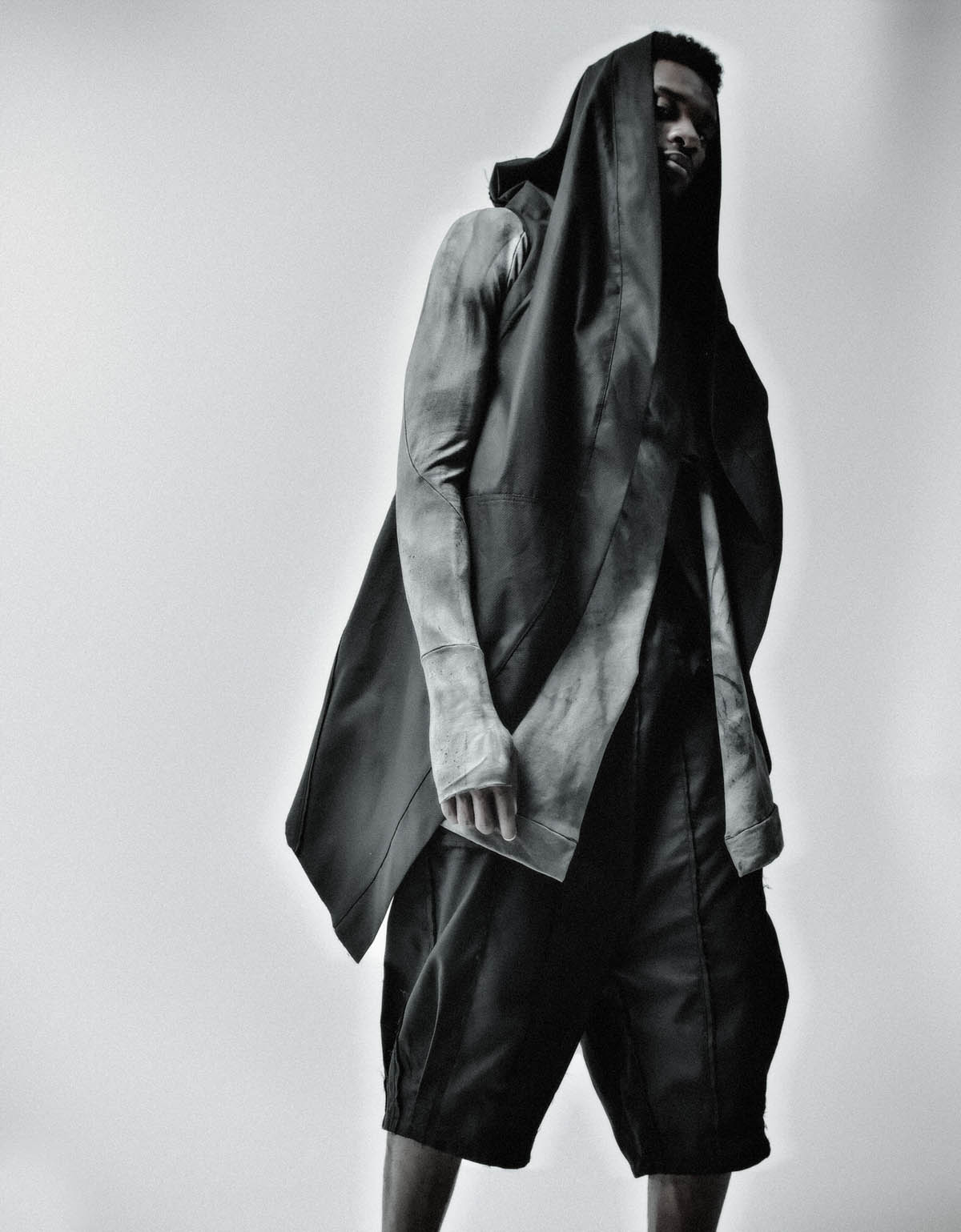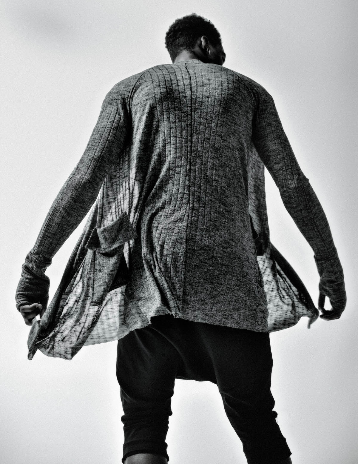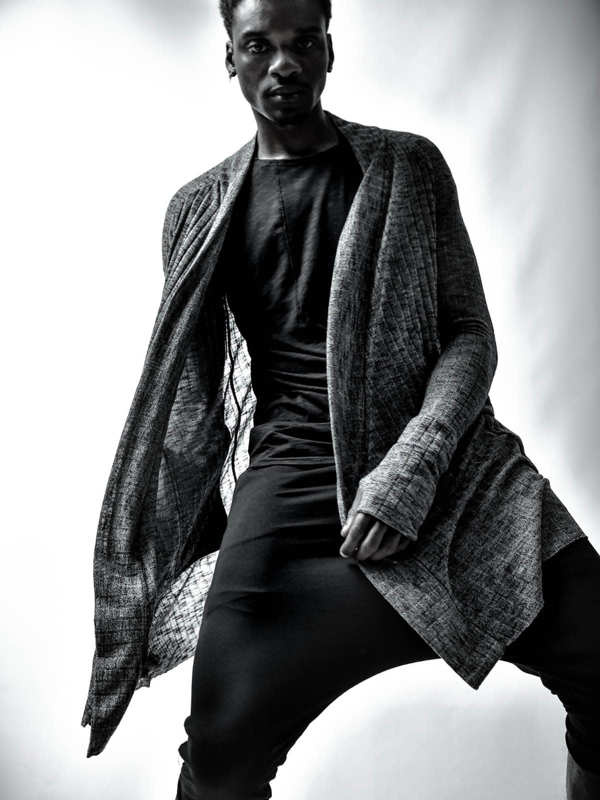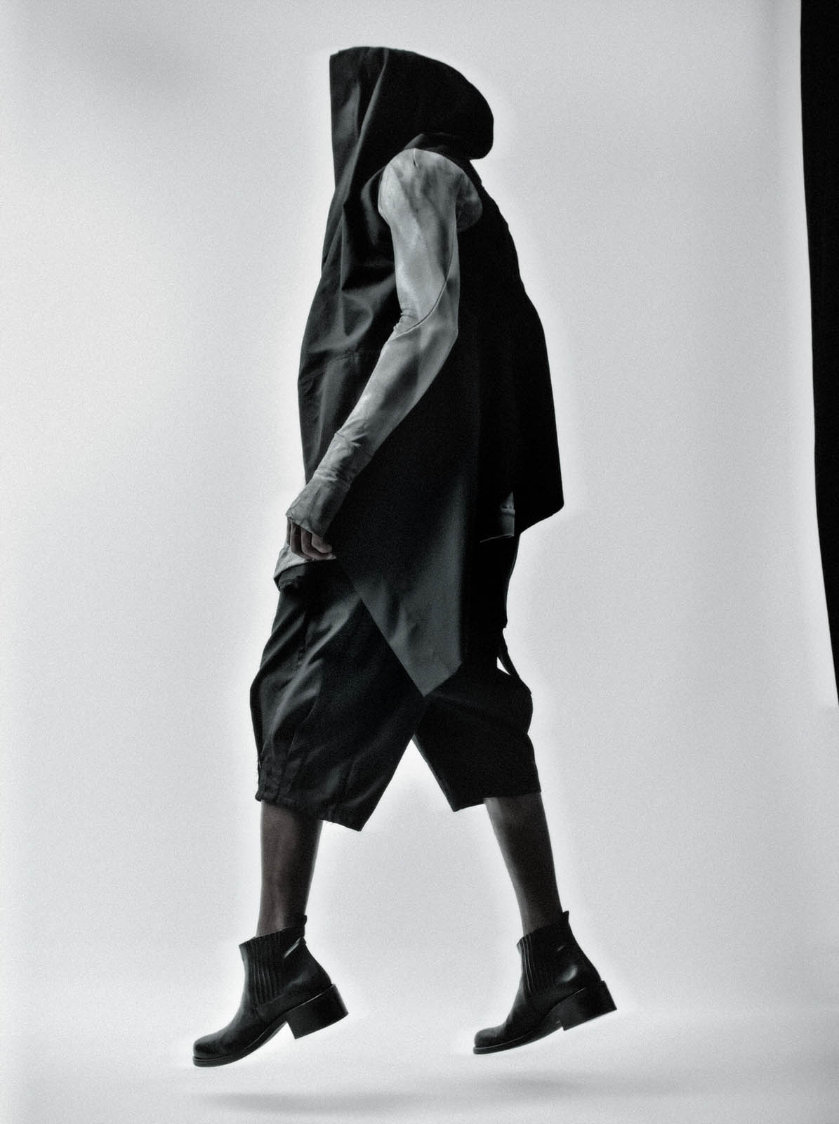 Where the moody movement plays with the simplicity of black & white. The masculine silhouettes dance in their airy flow almost like a play. Lights in the shadows enhance the nuances and textures which can be felt in the variety of layered, handcrafted garments.