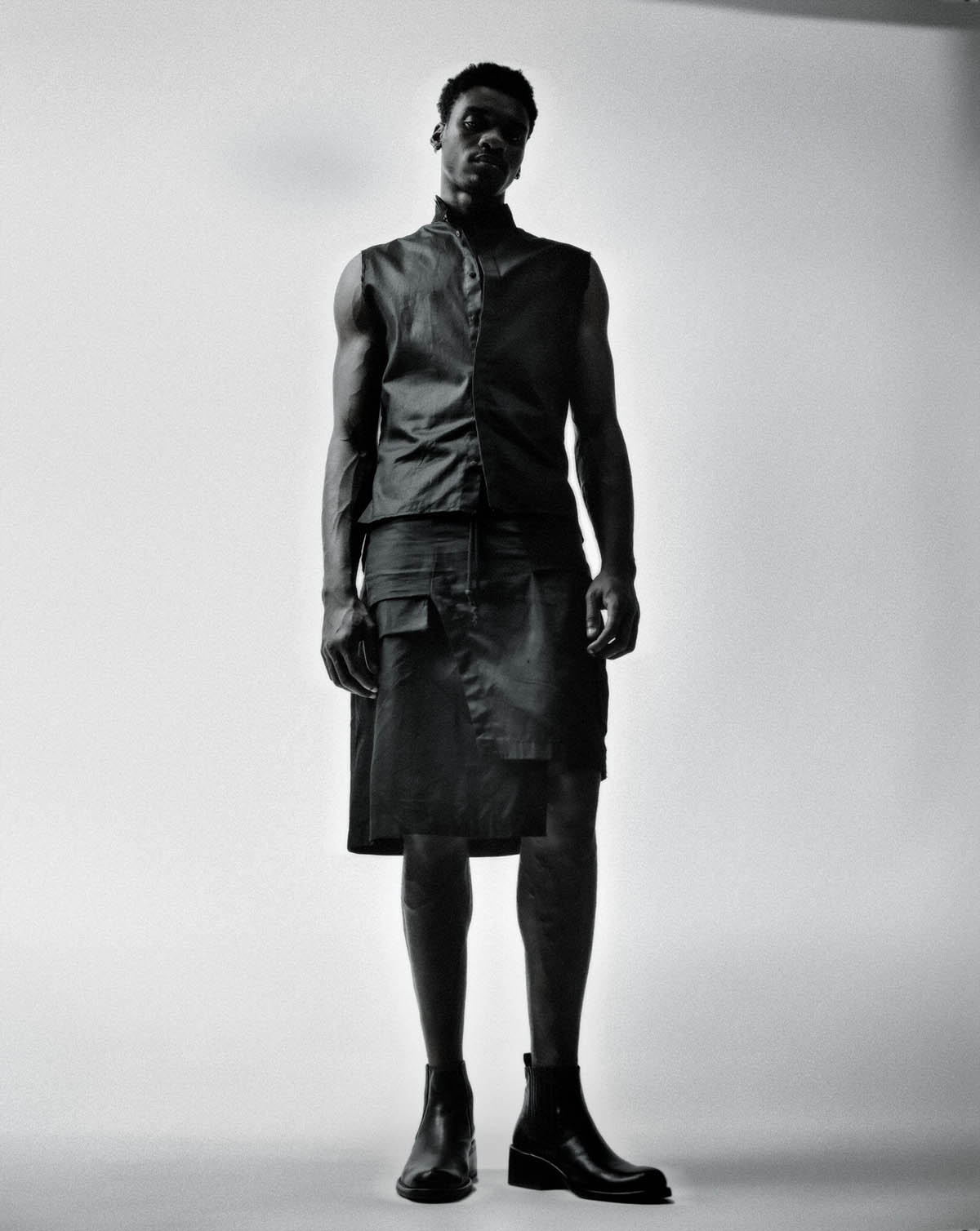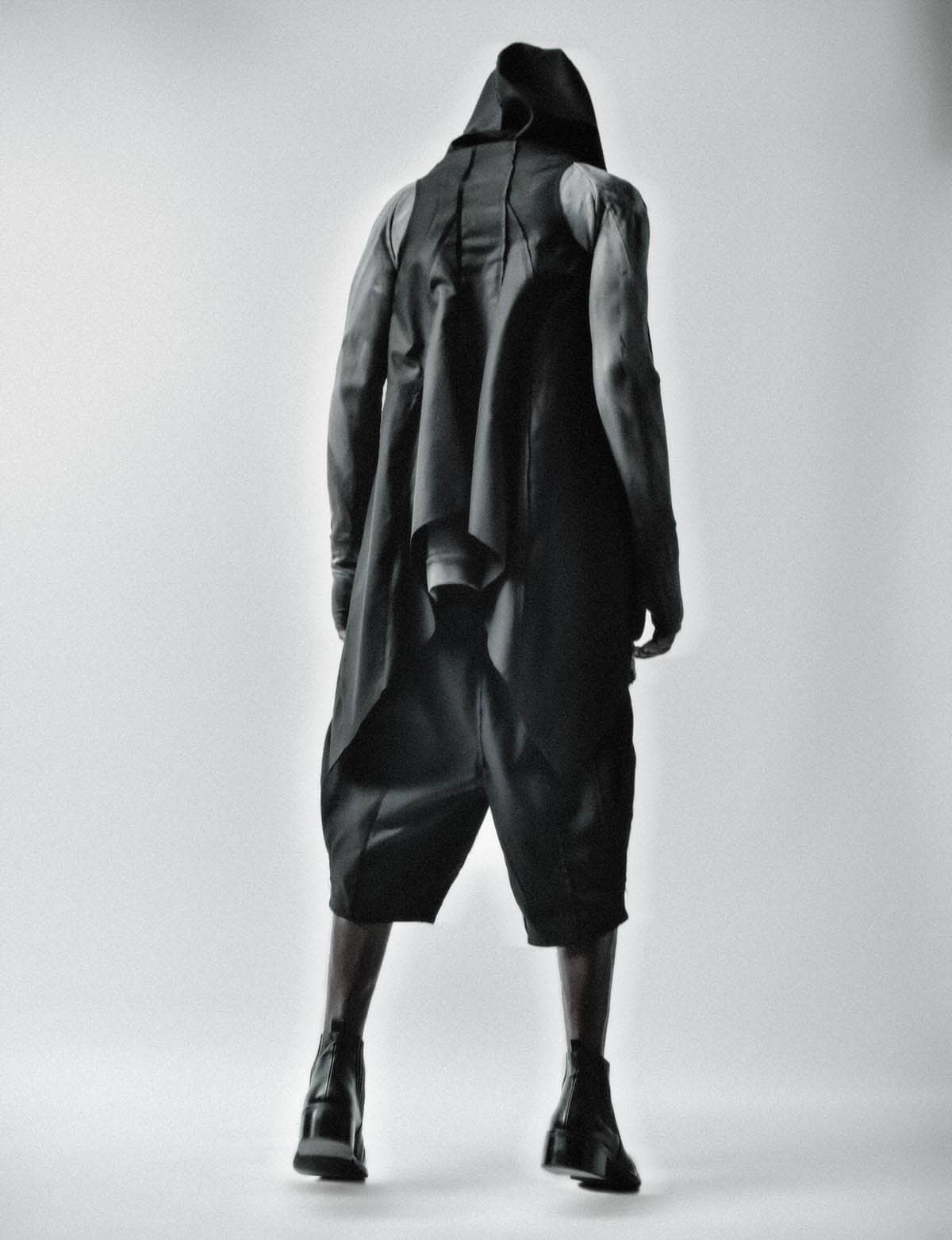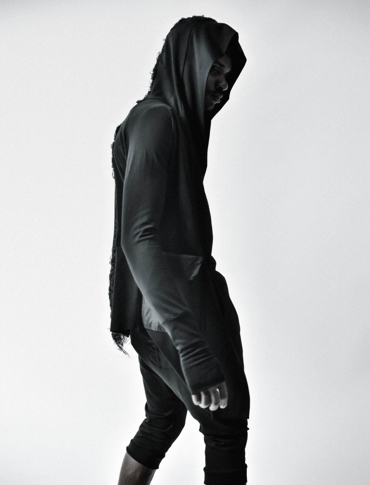 Where the moody movement plays with the simplicity of black & white. The masculine silhouettes dance in their airy flow almost like a play. Lights in the shadows enhance the nuances and textures which can be felt in the variety of layered, handcrafted garments.