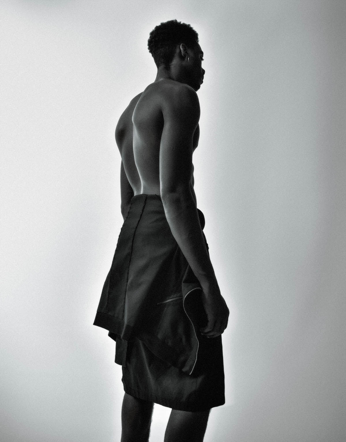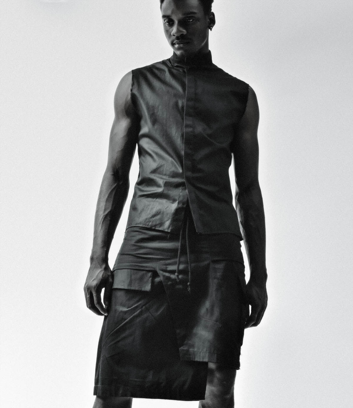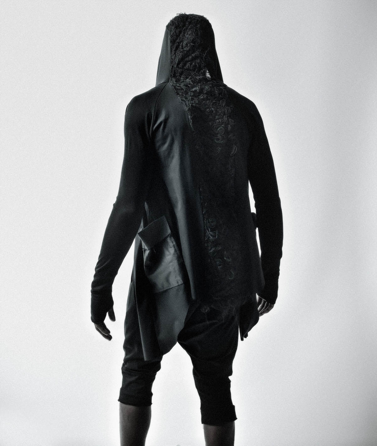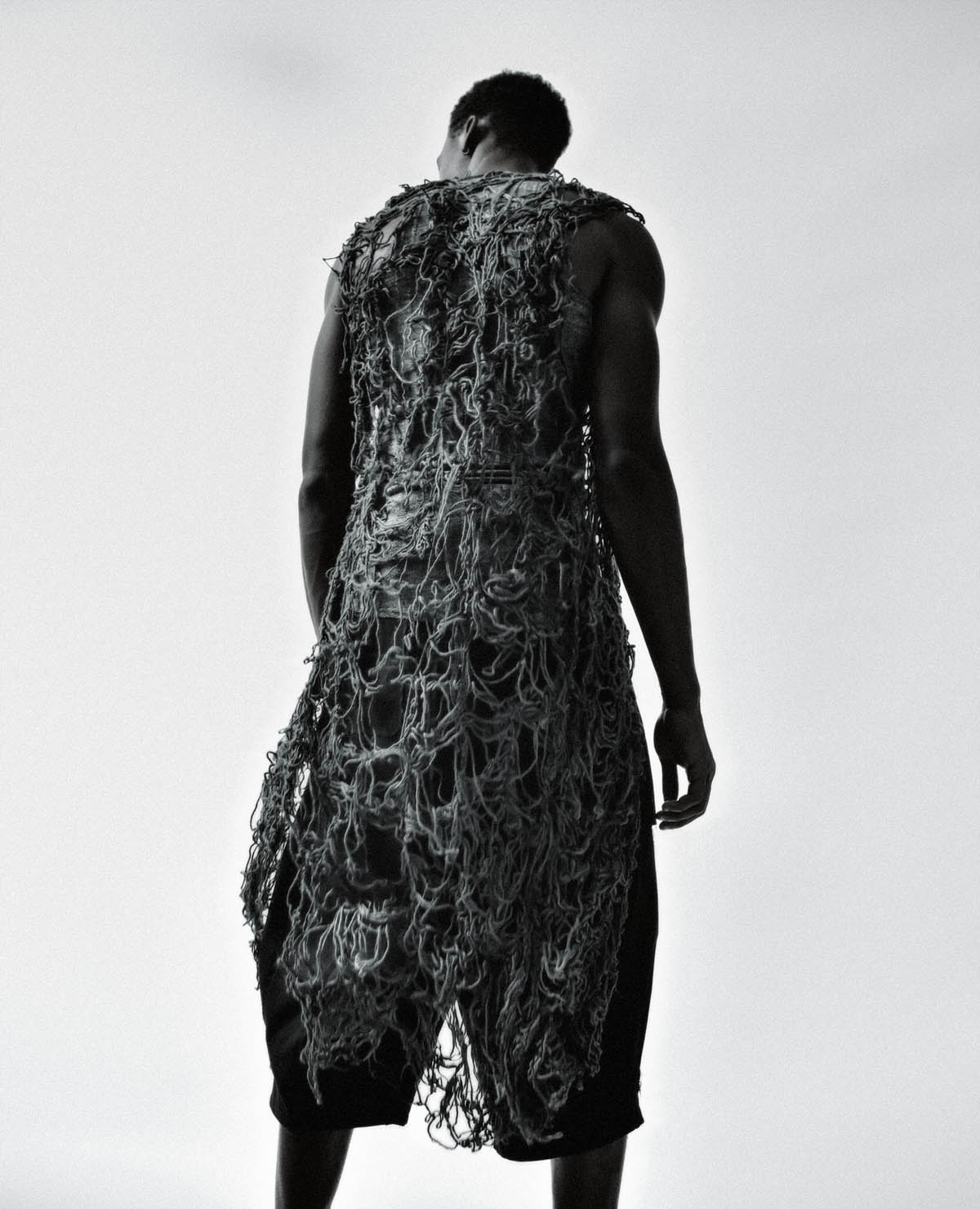 Where the moody movement plays with the simplicity of black & white. The masculine silhouettes dance in their airy flow almost like a play. Lights in the shadows enhance the nuances and textures which can be felt in the variety of layered, handcrafted garments.