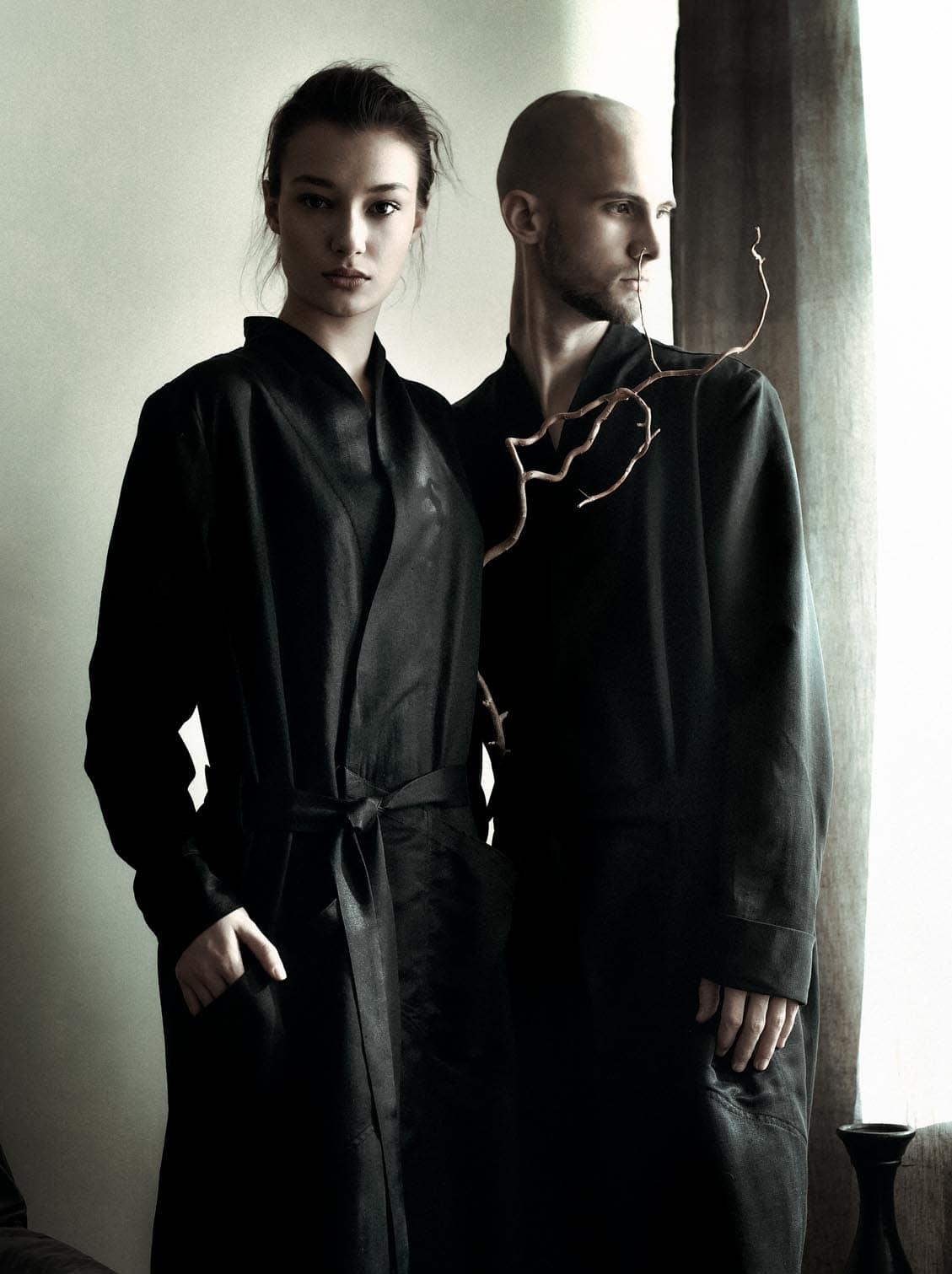 One to be dressed from morning to dawn in a blissful solitude with these men’s and women’s artisan bathrobes crafted from raw Bulgarian silks in a tailored silhouette. High standing collar, four front pockets & an elongated belt are the key features enhancing the overall construction.