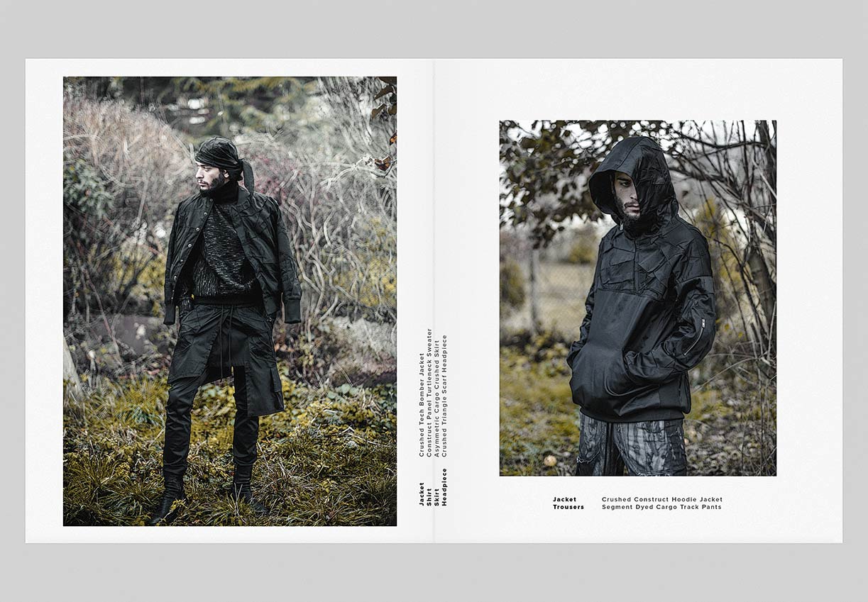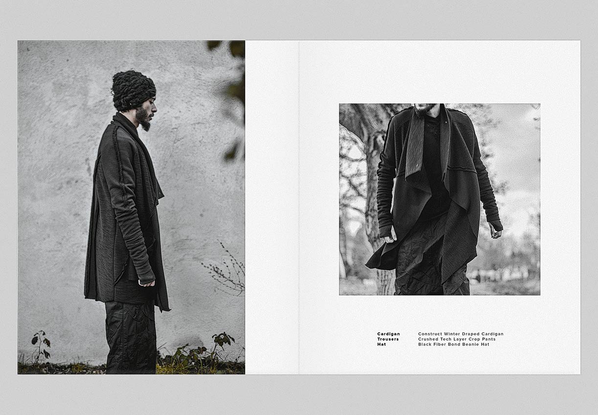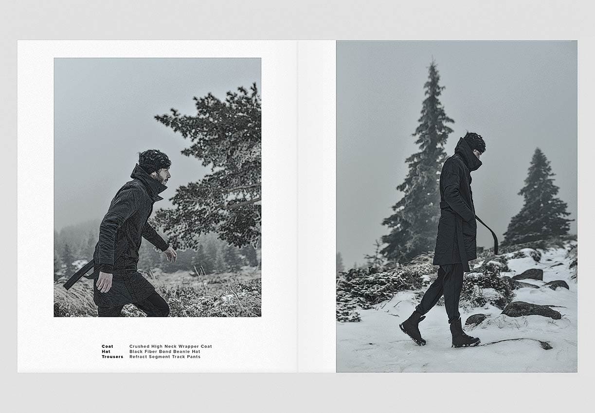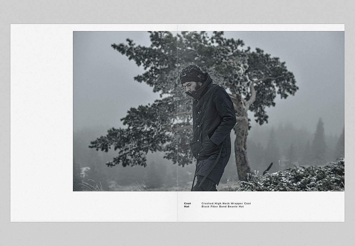 The winter menswear visuals entitled ‘Instinctive Changes’ explore the unpredictable scenery and her presence as it is. Featuring pieces from ‘YT’ collection crafted in signature ‘Crushed’ technique. Fabrics in wool, cotton & linen are constructed in a chaotic multi-fold manner to create the peculiar unison between environment and appearance.