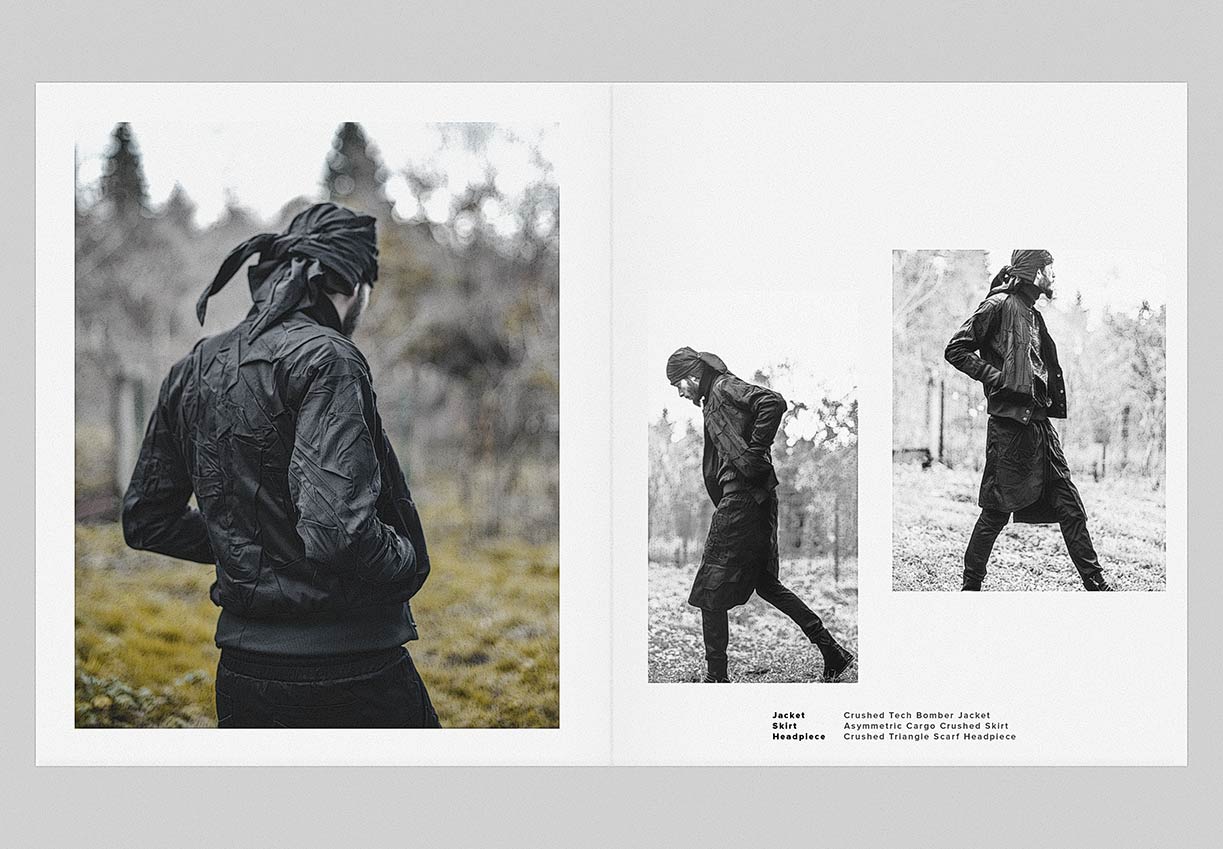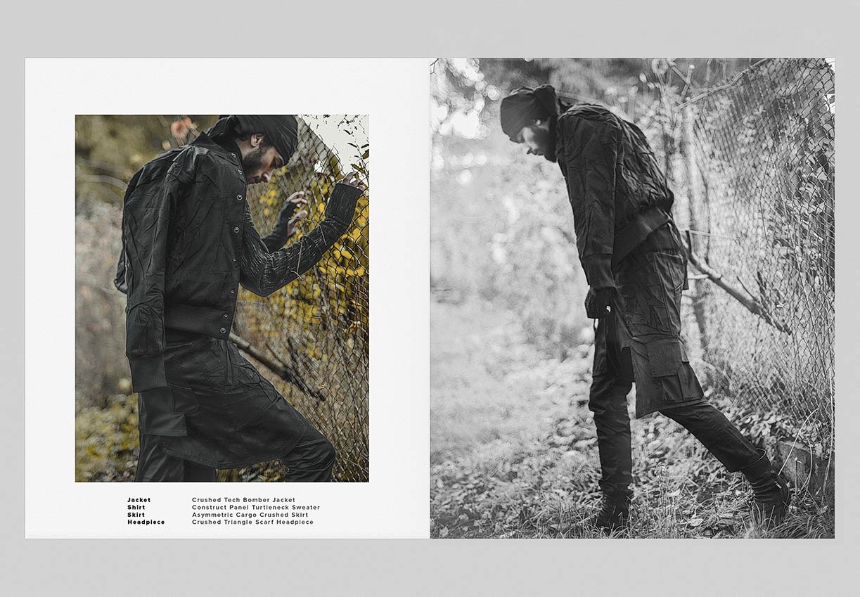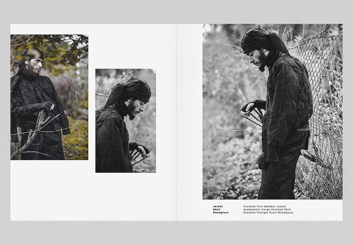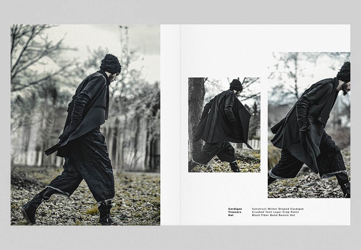 The winter menswear visuals entitled ‘Instinctive Changes’ explore the unpredictable scenery and her presence as it is. Featuring pieces from ‘YT’ collection crafted in signature ‘Crushed’ technique. Fabrics in wool, cotton & linen are constructed in a chaotic multi-fold manner to create the peculiar unison between environment and appearance.