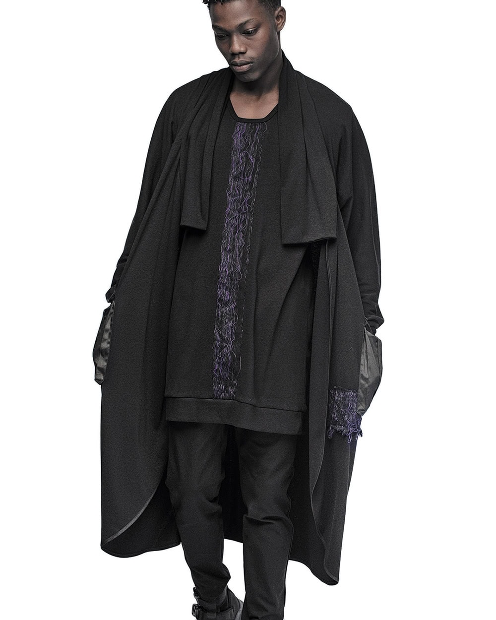 – Relaxed elongated draped silhouette