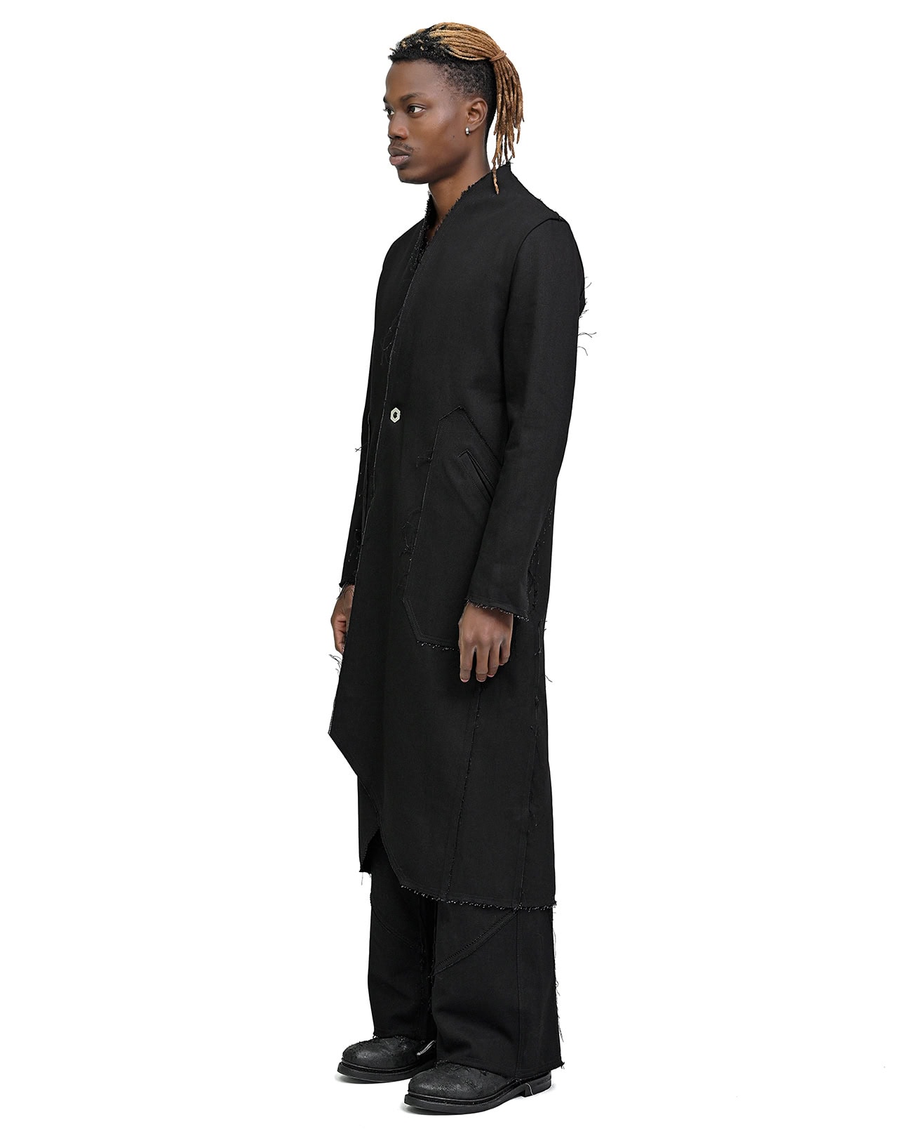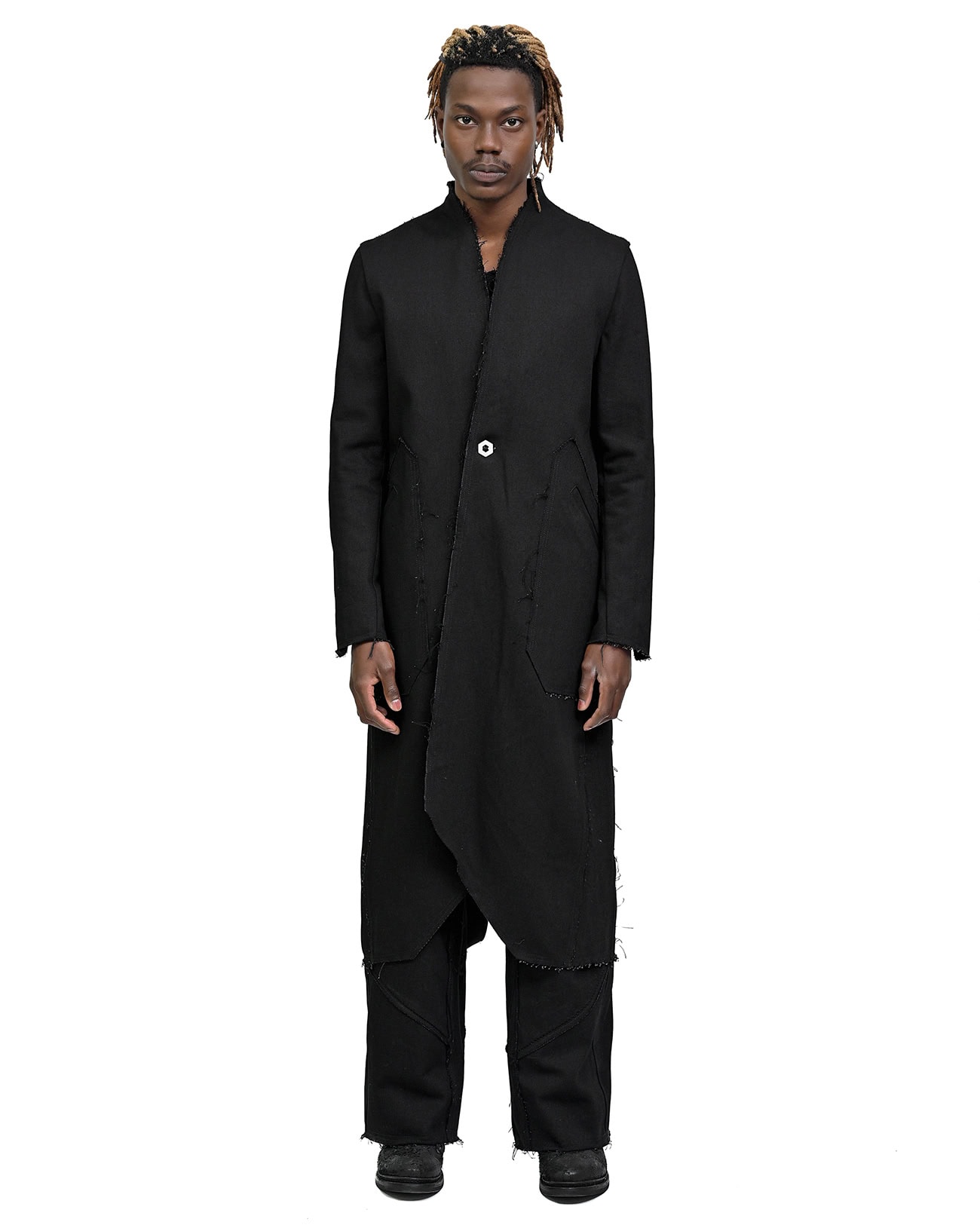 This ‘Insolitum’ garment is crafted in 100% cotton denim in pure black color in raw, untreated finish. Raw denim offers unique characteristics which begin to unveil through time and wear where the fabric will naturally begin to age beautifully and offer one of a kind appearance & fades especially noticeable at the edges.