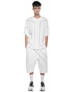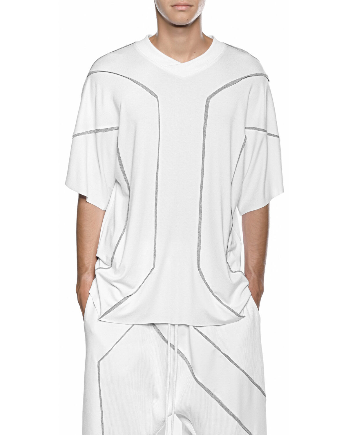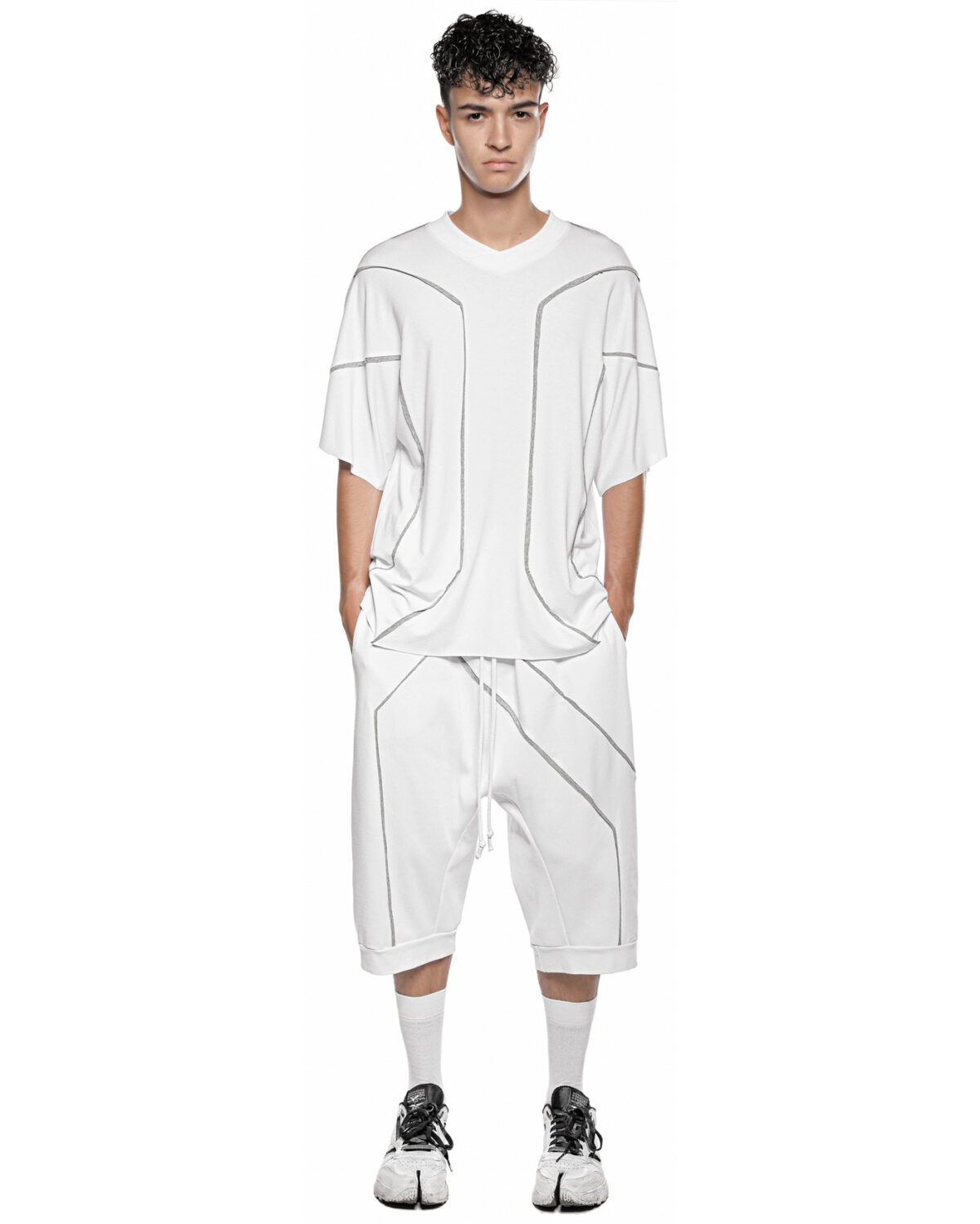 – All white in color with contrast grey seaming