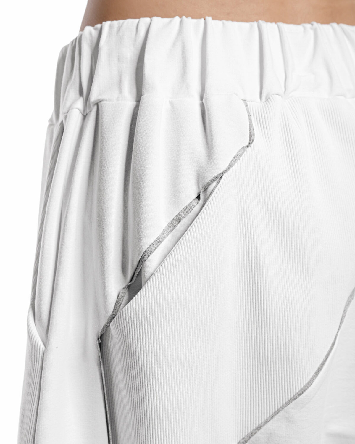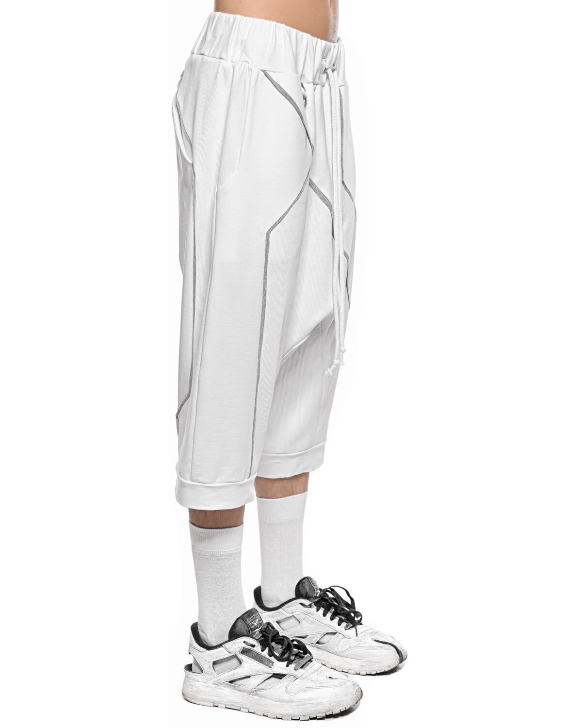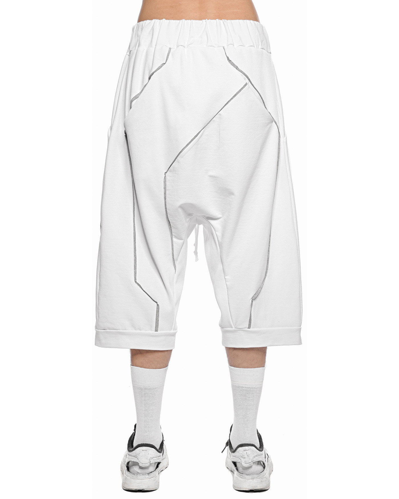 These shorts articulate the concept of a stellar Cluster, where a multi-panel geometric design is interconnected by prominent external contrast seams. The ribbed knit texture adds tactile depth to the wide, drop-crotch silhouette, creating a piece that is both conceptually rich and highly comfortable.
