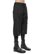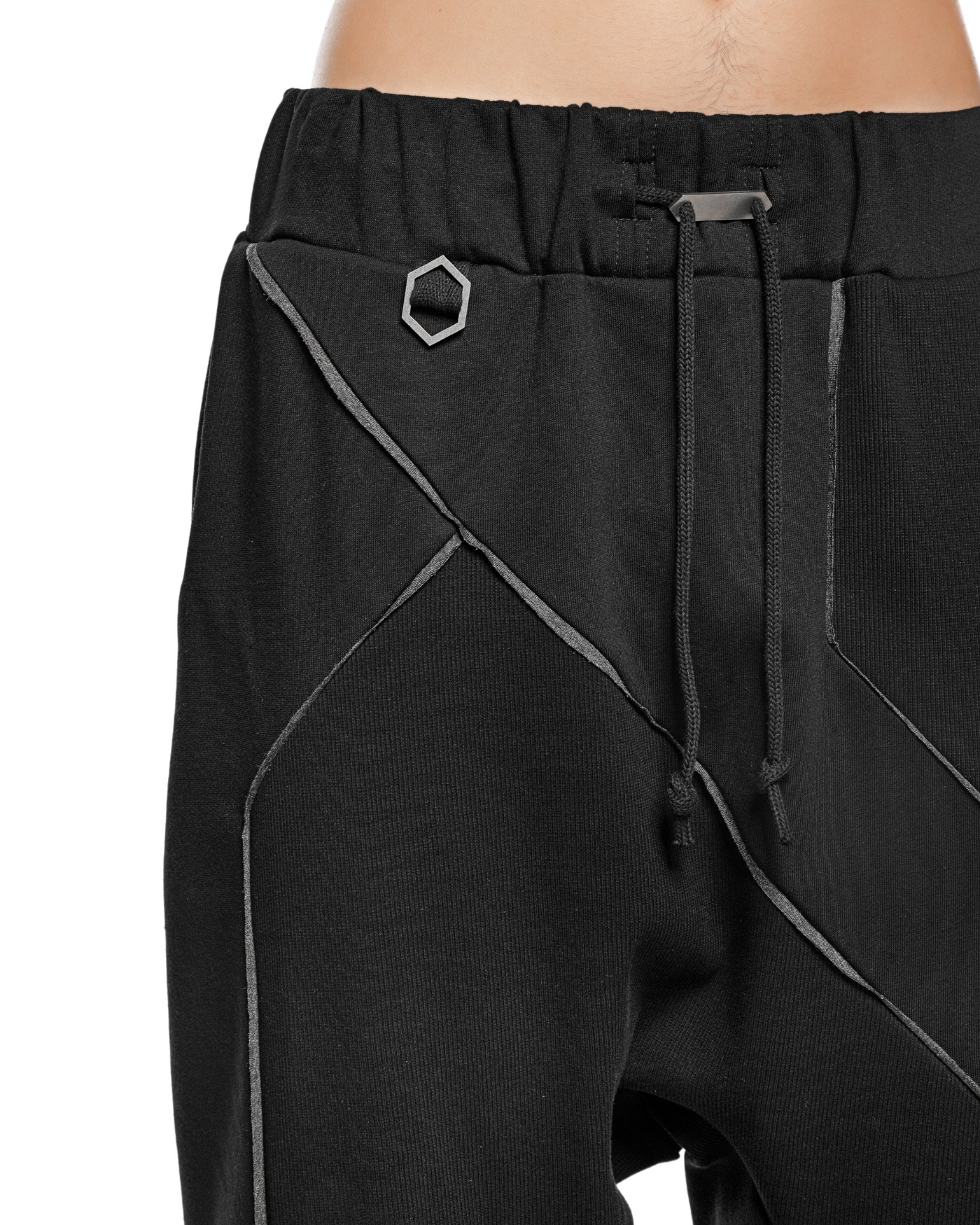 These shorts articulate the concept of a stellar Cluster, where a multi-panel geometric design is interconnected by prominent external contrast seams. The ribbed knit texture adds tactile depth to the wide, drop-crotch silhouette, creating a piece that is both conceptually rich and highly comfortable.
