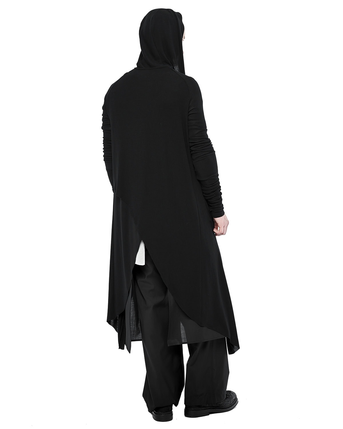The Elongated layered cardigan is crafted in a lightweight cotton knit with soft to the skin touch. It features an elongated silhouette with intricate overlapping layers, enhancing a draped and relaxed fit. This garment is ideal for layering and overall blurred lines and proportions of the silhouette.