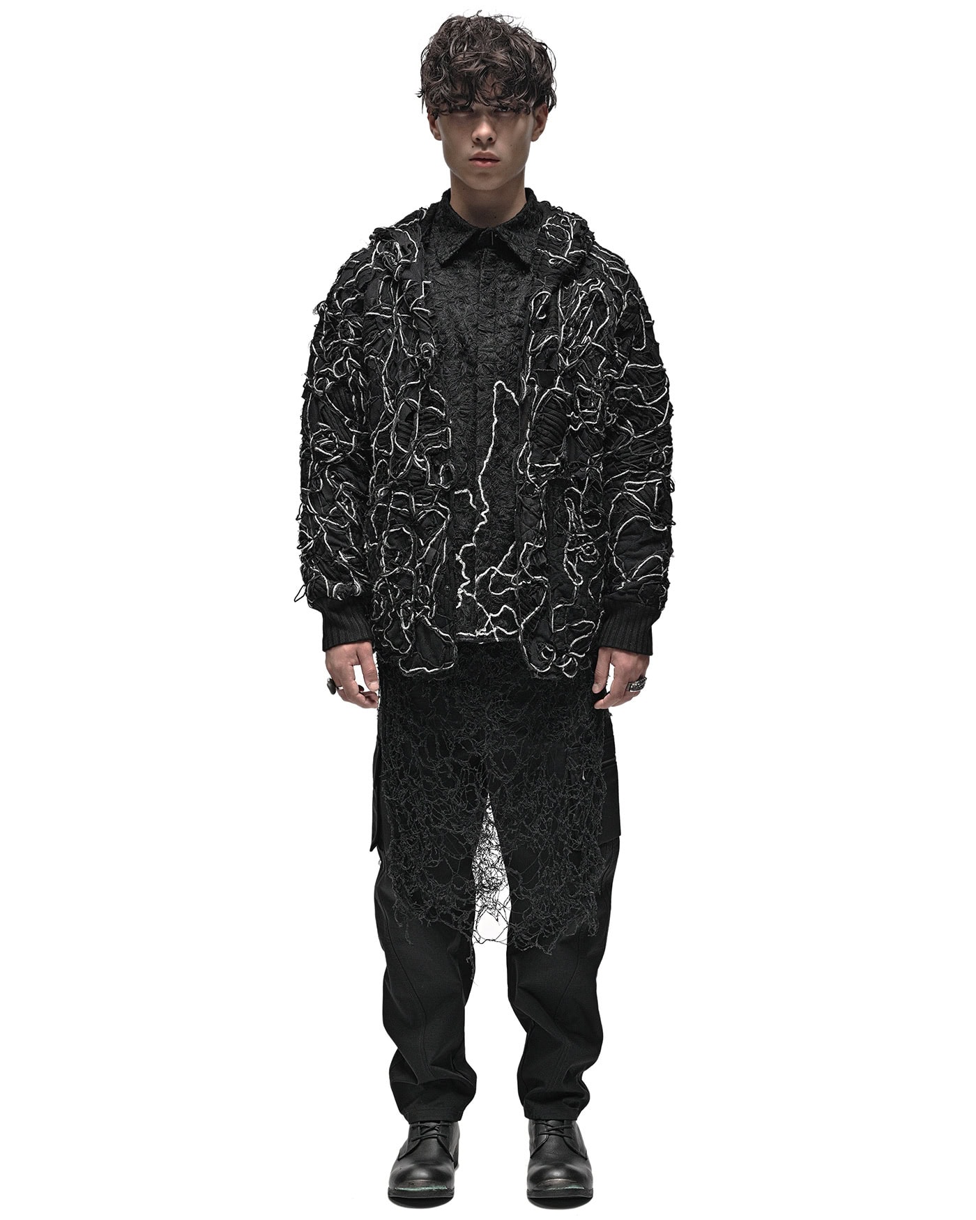 — multiple yarn & fabric patches in black & grey color