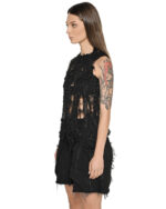 The entirely handcrafted Filamentous Shades Tank Top is defined by the signature ‘Fiber Bond’ technique, which arranges irregular, vertical fibers in Black yarn to create its unique, semi-transparent texture.
