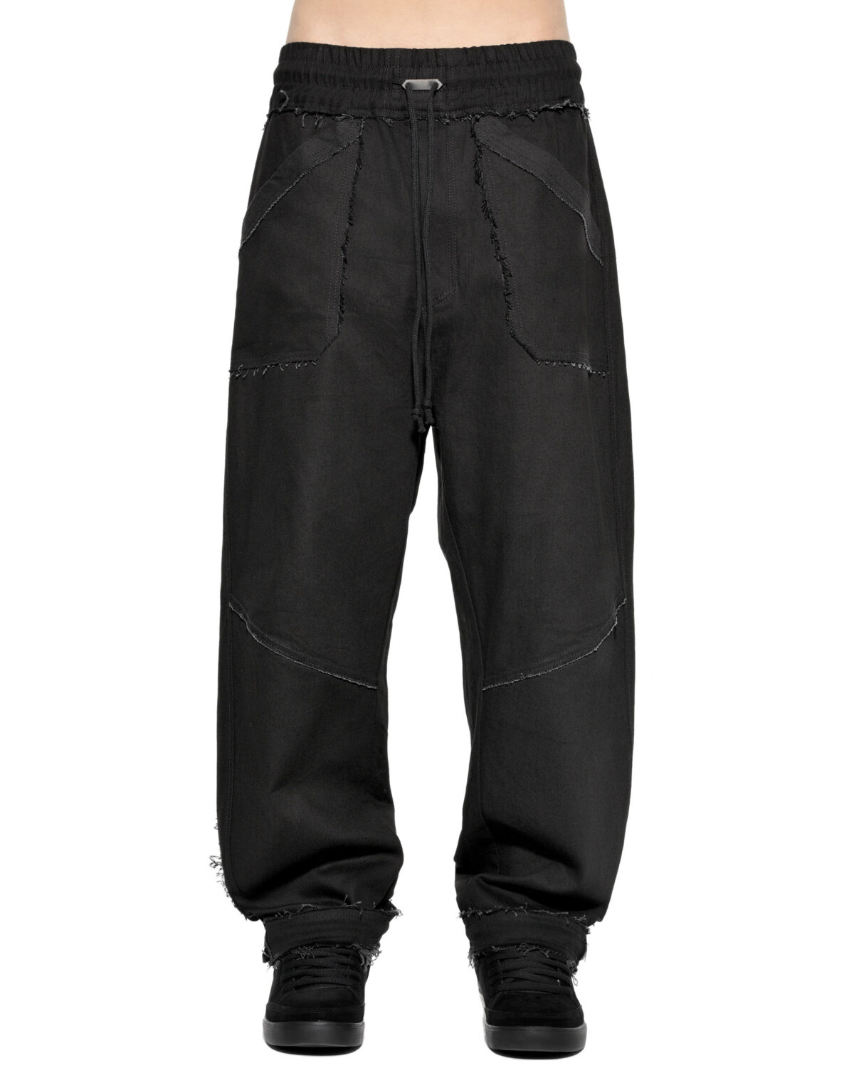 - Verstellbarer schwarzer Kordelzug an Taille und Saum