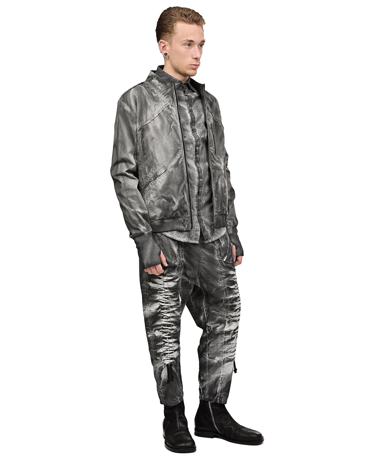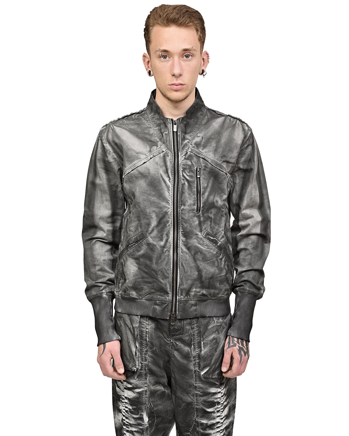This item features object-dye coloring, washing and texture treatment resulting in one of a kind appearance. Each garment possesses unique look, distressed details and dye variations are part of the intended design characteristics.