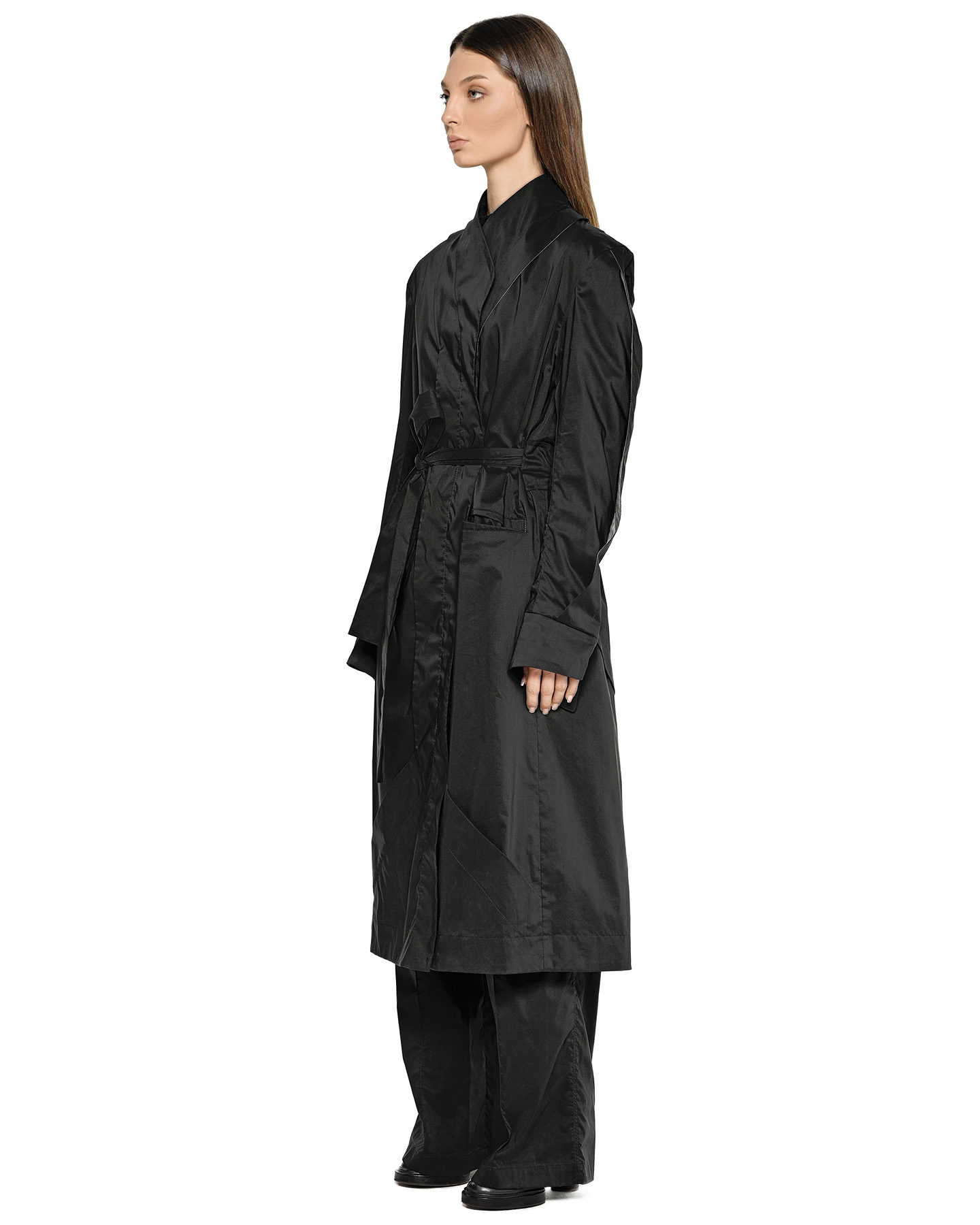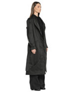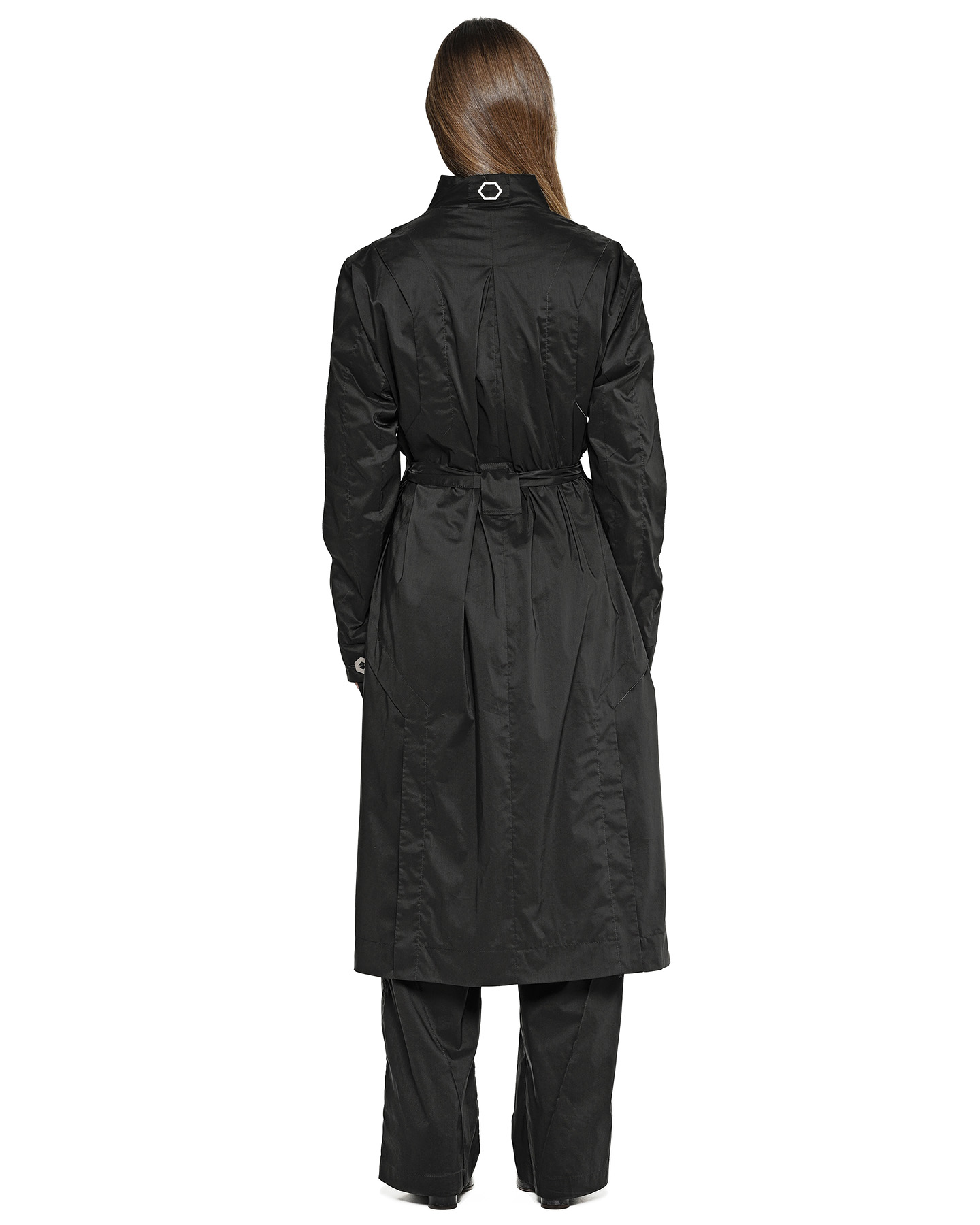 This trench coat explores the concept of Gravity through its deconstructed, geometric form, where overlapping panels and asymmetrical details appear shaped by a fundamental force.
