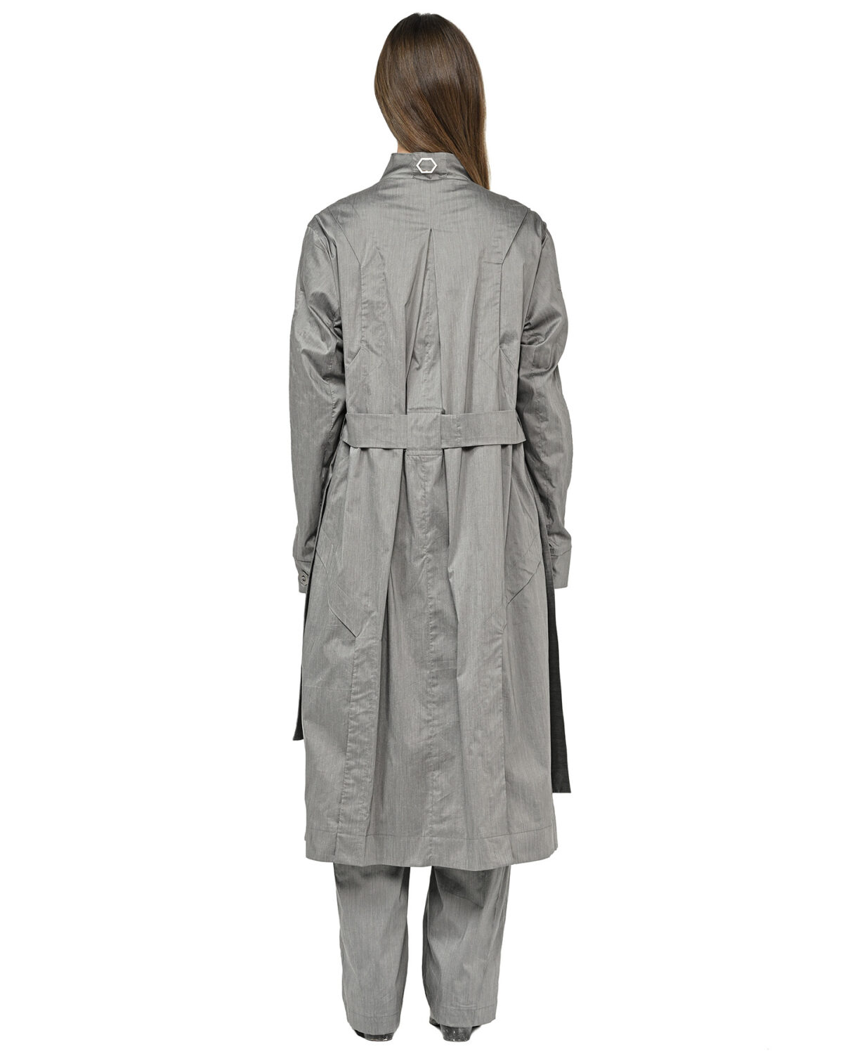 – Asymmetrical cuffs with signature steel hexagon buttons