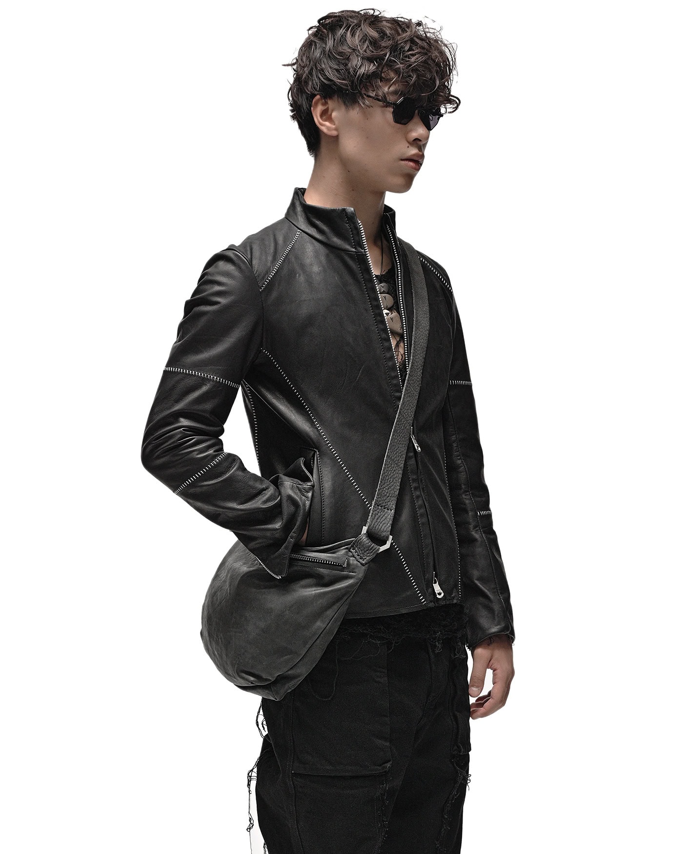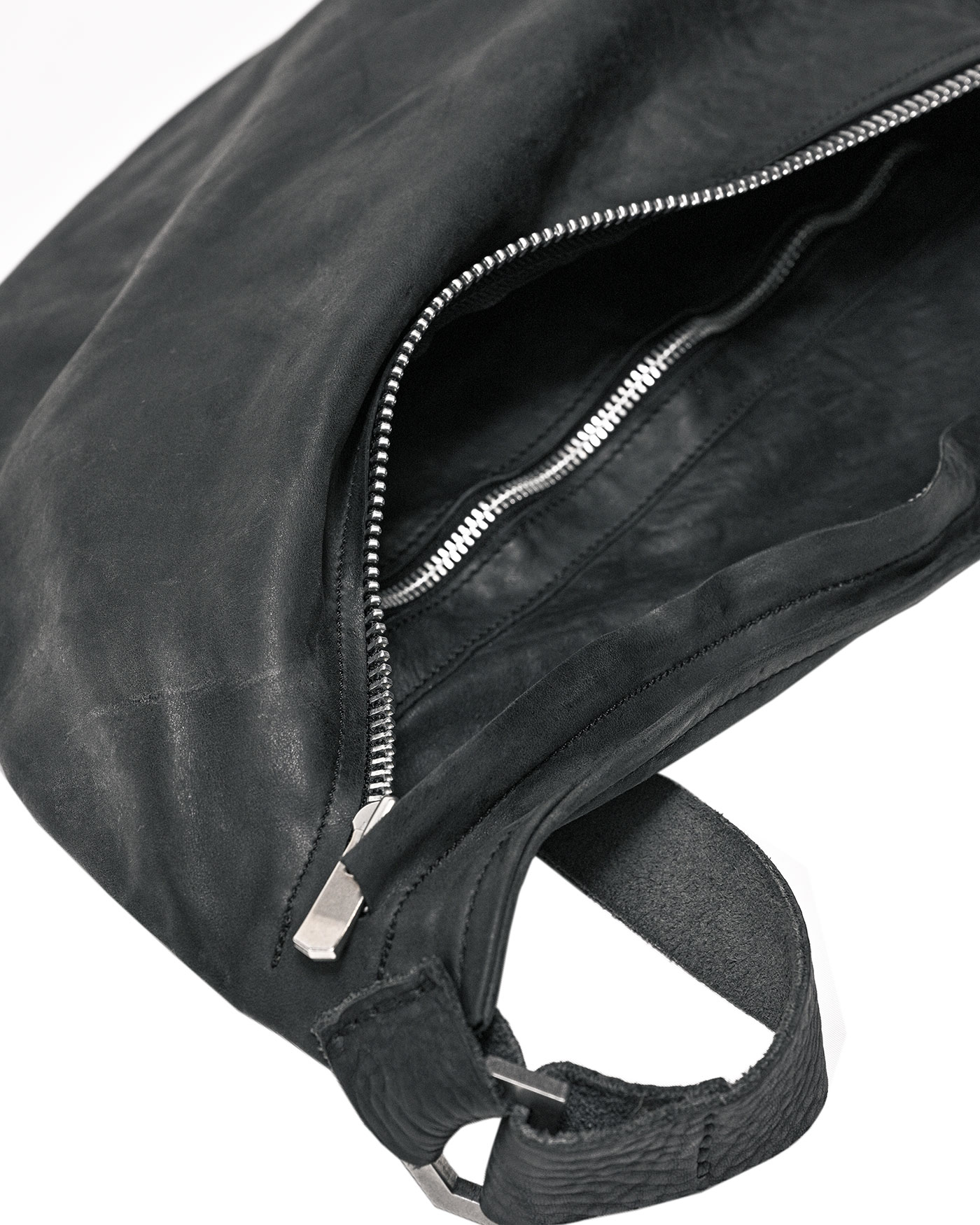A signature shoulder bag crafted from premium, artisan horse & bull hides tanned with extracts of olive leaves unveiling natural features emphasizing the beauty of natural, grained leather with porous, smooth texture, wrinkles and distressing achieved through a complex dyeing technique.