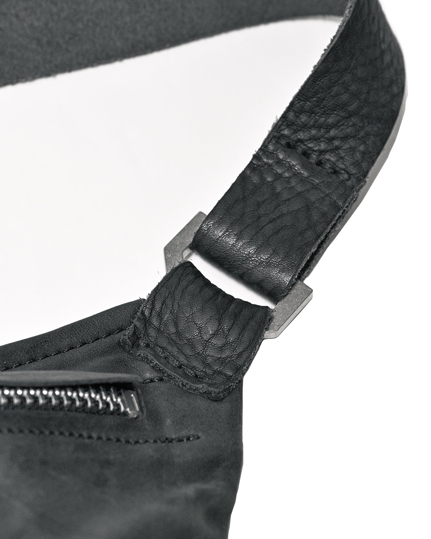 This shoulder bag is crafted in premium, artisan leather. It is a horse leather tanned with extracts of olive leaves with all its natural features that emphasizes the beauty of a natural leather. It is a porous smooth leather with natural distressing. Due to the porosity, this leather is warm and natural and has a typical leather patina. The color is a sophisticated shade between black, grey and a subtle greenish-blue hue under certain light conditions.