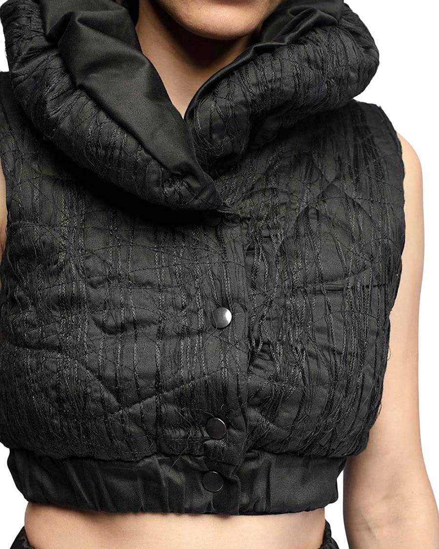 All Fiber Bond pieces possess individualistic & one of a kind appearance. Fibers and bonding range from loose and see-through patterns in a variety of fabric & yarn compositions – from lightweight linen & cotton to voluminous wool yarns for greatest warmth. This techniques shapes one unique appearance and distinctive character.