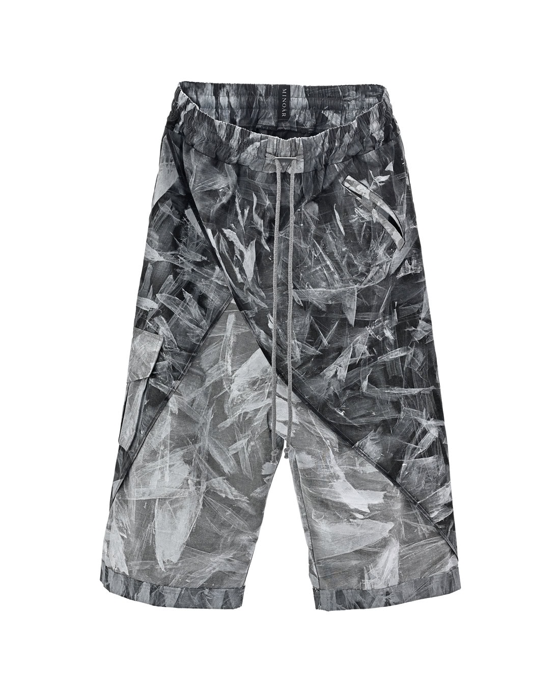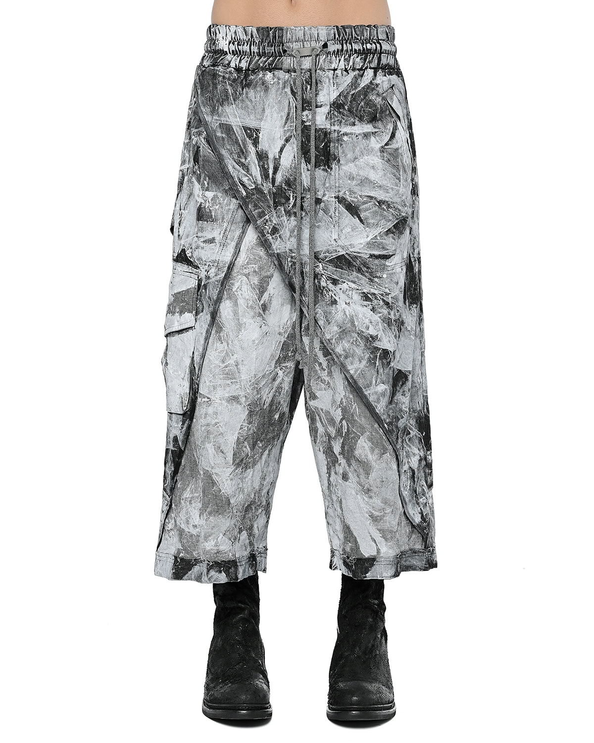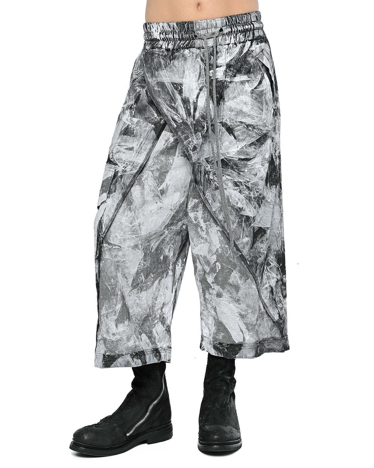 Beschichtete weit geschnittene, verkürzte Hose in Lagenoptik