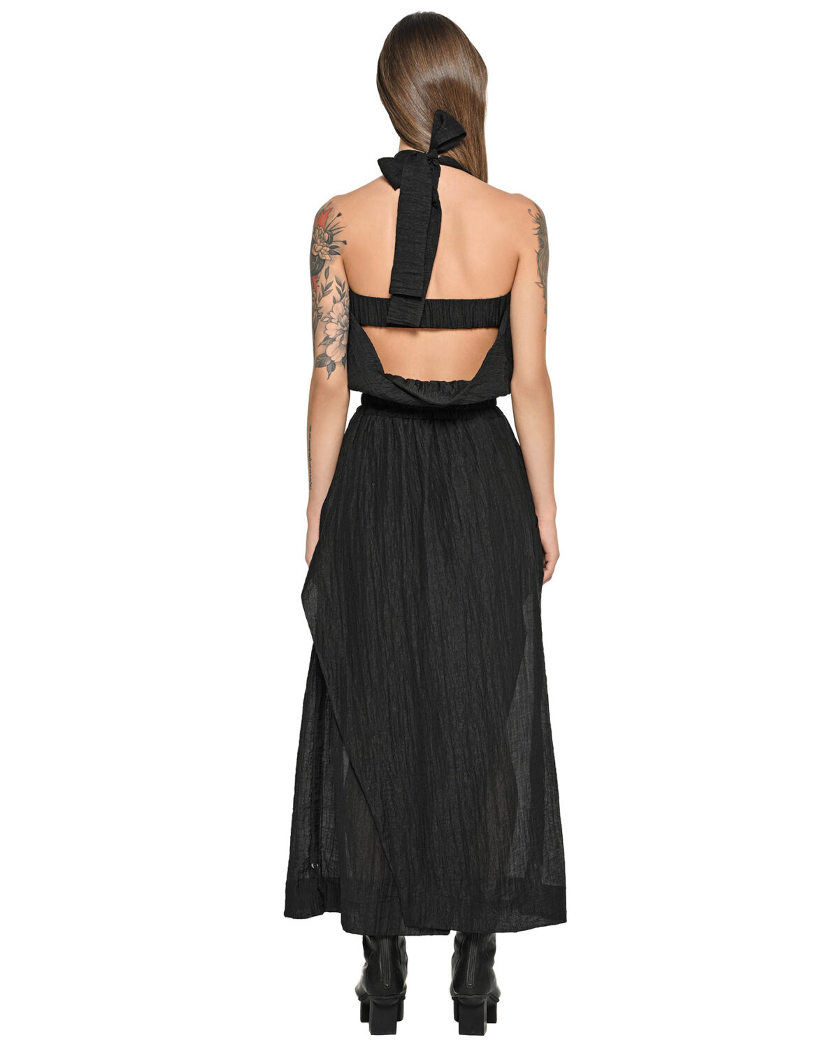Crafted from an ethereal, lightweight fabric, the resulting garment is exceptionally fluid and versatile, offering a personalized architecture of form in a relaxed, loose silhouette.