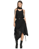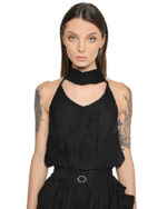 – Deconstructed turtleneck collar design with adjustable straps