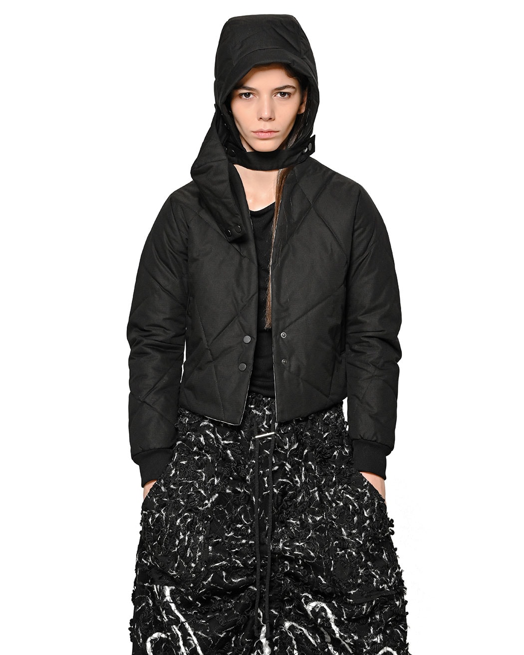 This black ‘Shield’ protective head mask features a fully insulated design in a signature linear quilting. With outer shell crafted from 100% ripstop tearproof cotton, it is the appropriate headwear piece for a subtle, minimalistic approach to keep you shielded.