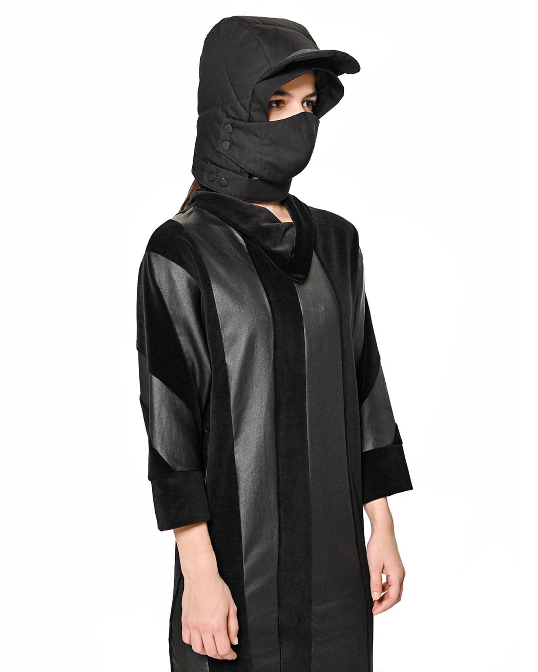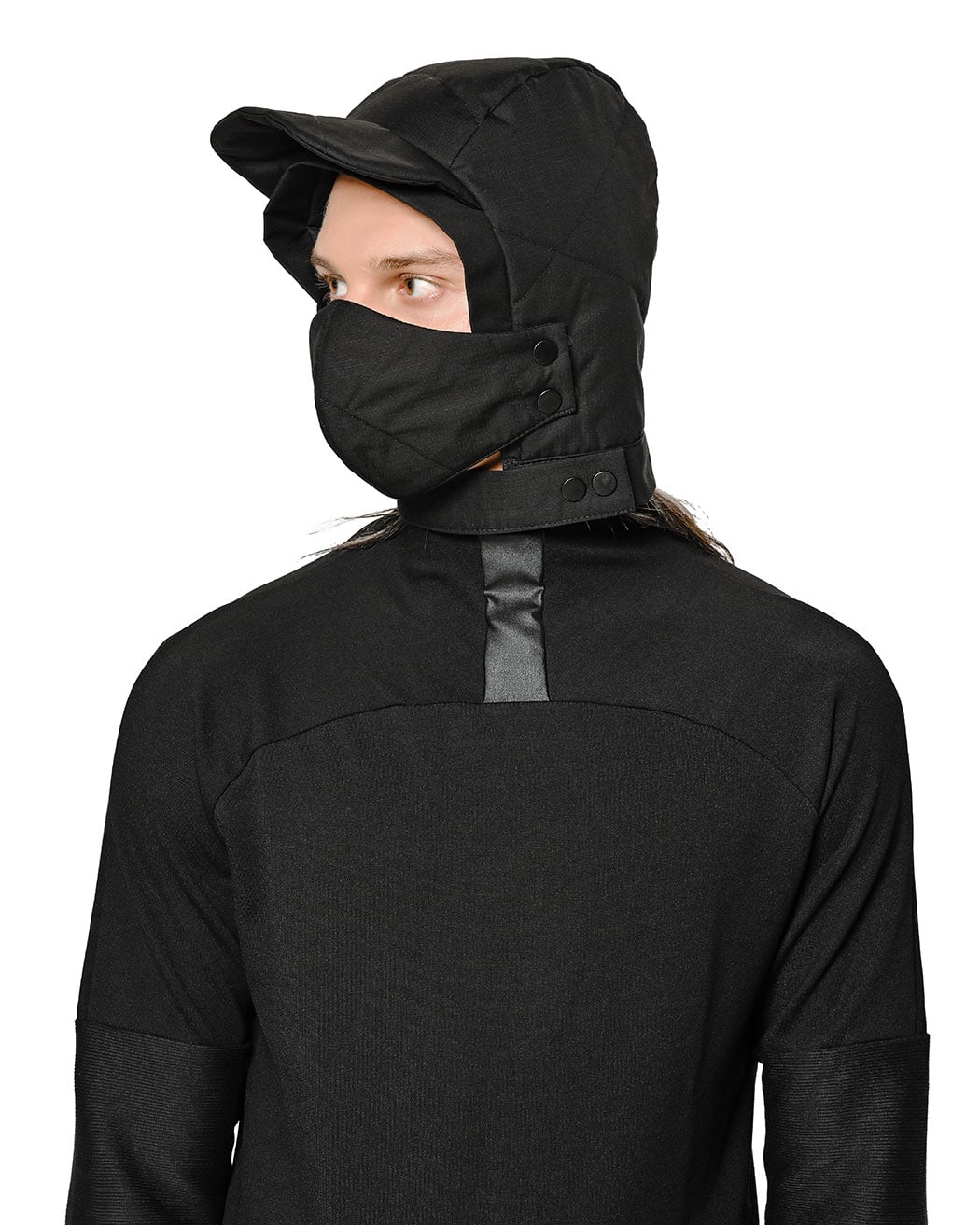 This black ‘Shield’ visor protective head mask features a fully insulated design in a signature linear quilting. With outer shell crafted from 100% ripstop tearproof cotton, it is the appropriate headwear piece for a subtle, minimalistic approach to keep you shielded.