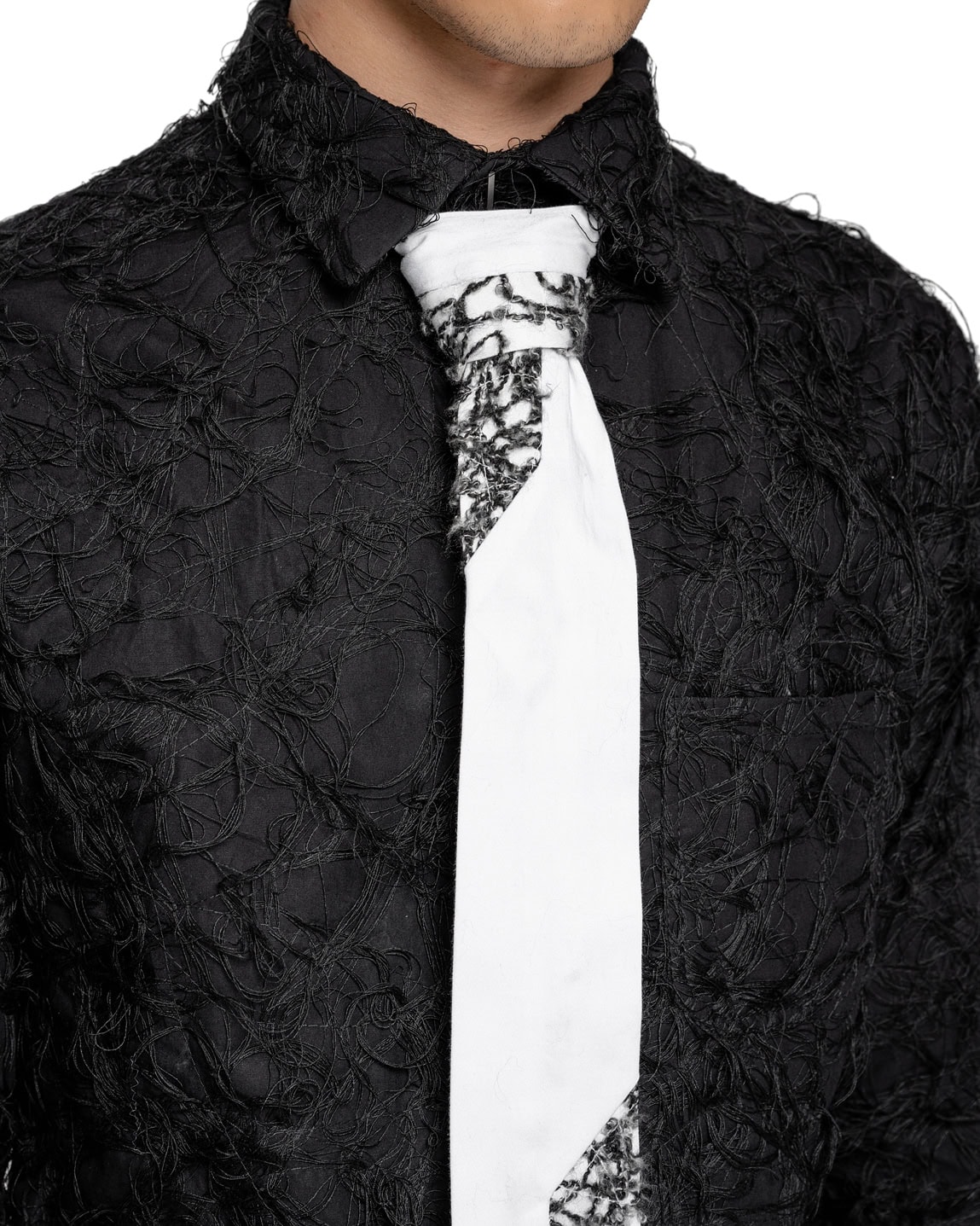 All Fiber Bond pieces possess individualistic & one of a kind appearance. Fibers and bonding range from loose and see-through patterns in a variety of fabric & yarn compositions – from lightweight linen & cotton to voluminous wool yarns for greatest warmth. This techniques shapes one unique appearance and distinctive character.