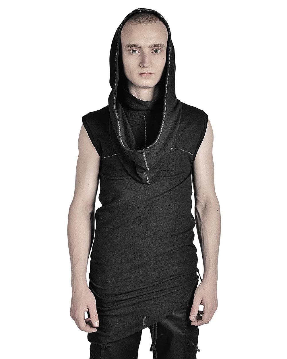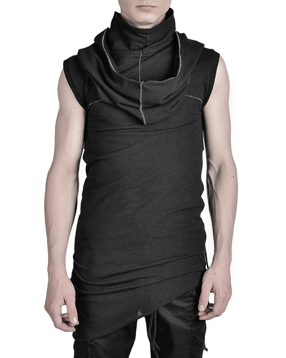 SCAR-STITCHED SLEEVELESS HOODIE