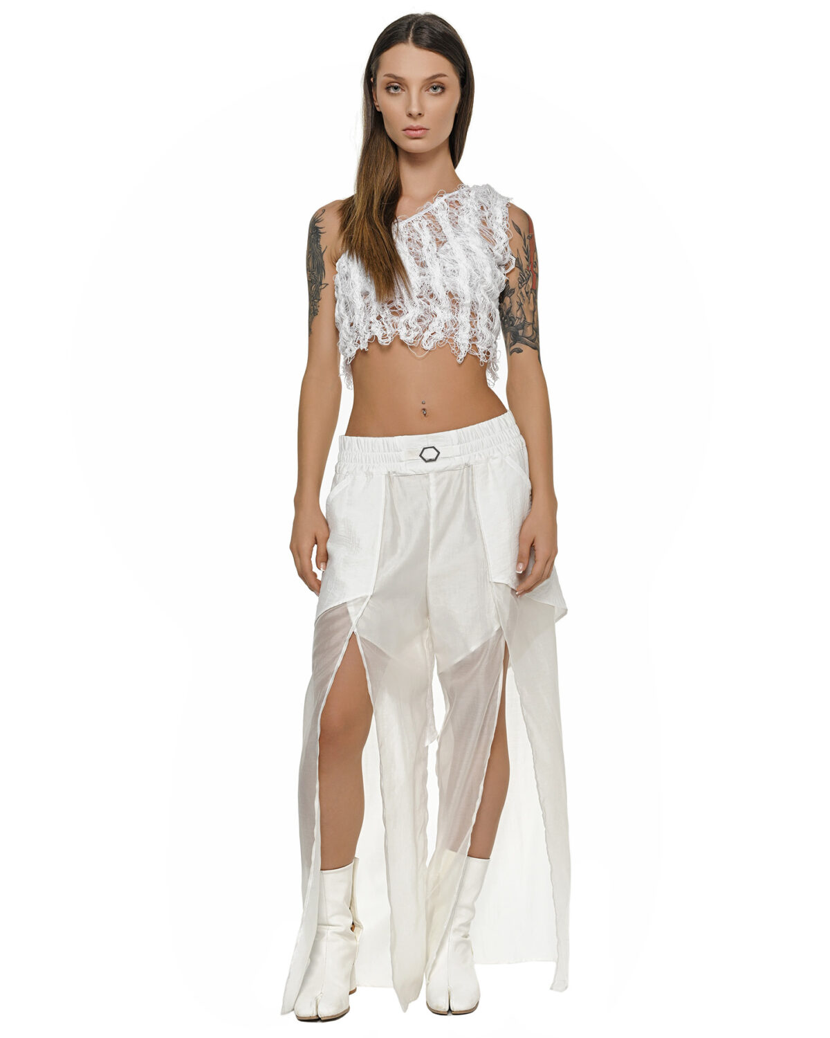 – White in color– Slim silhouette