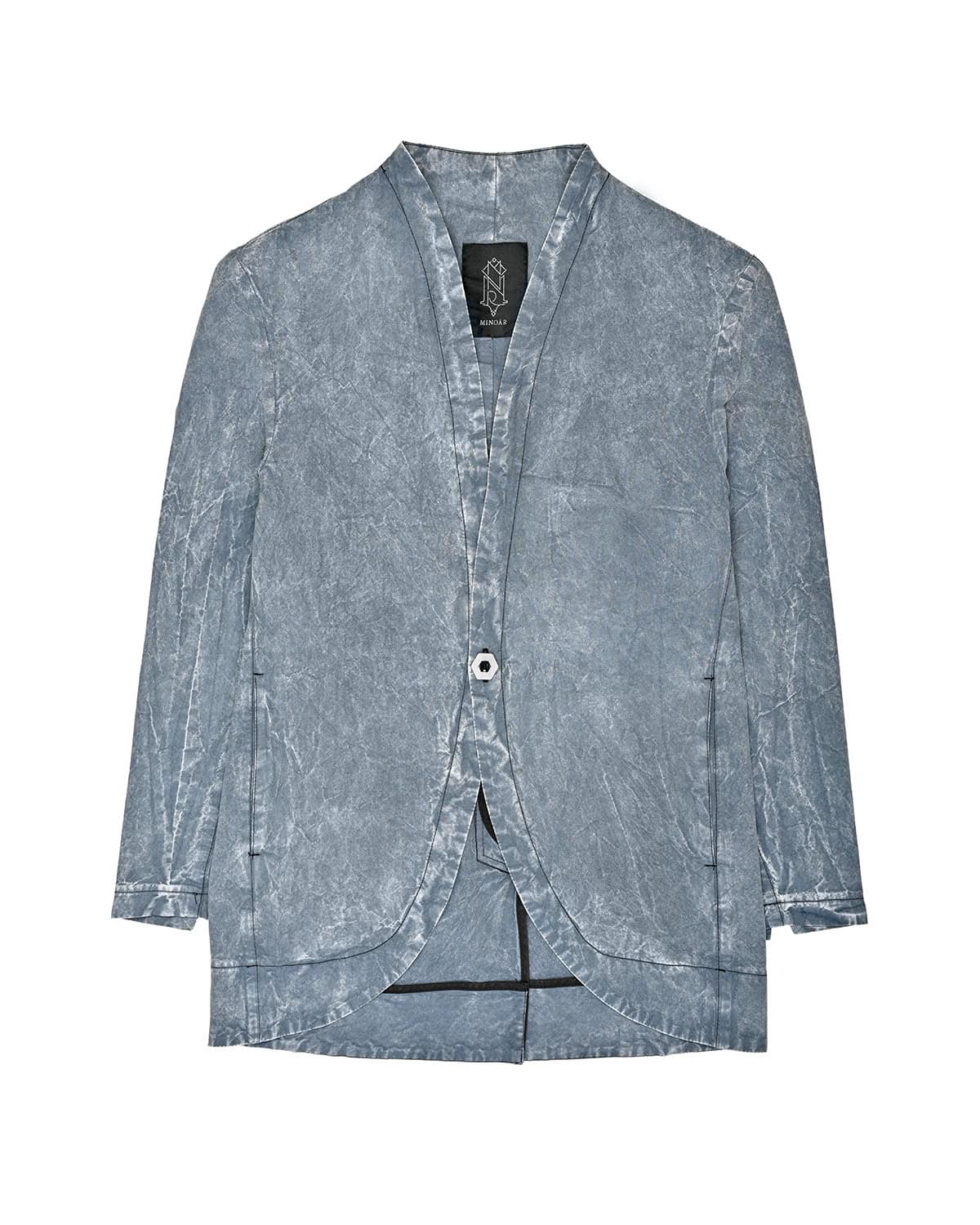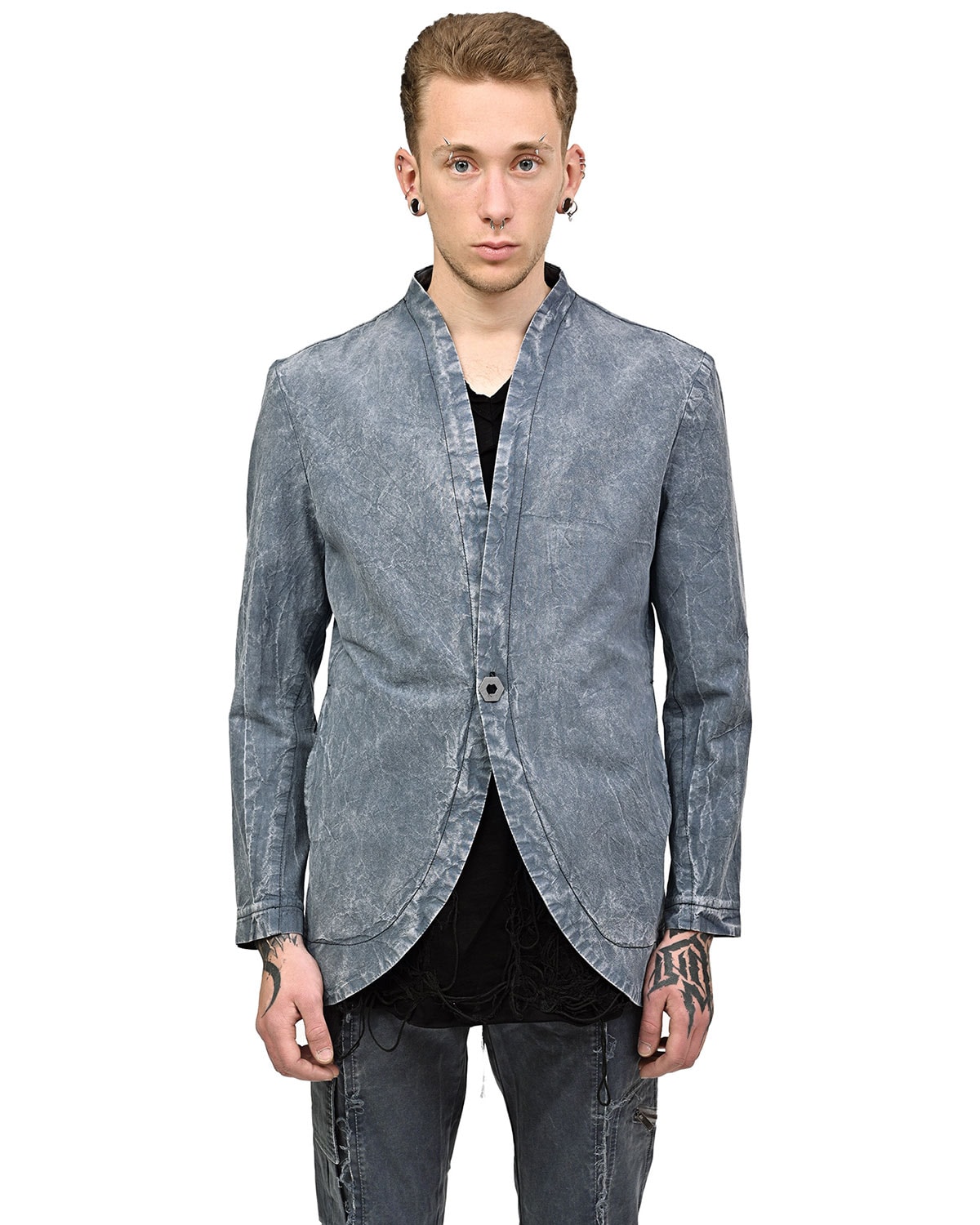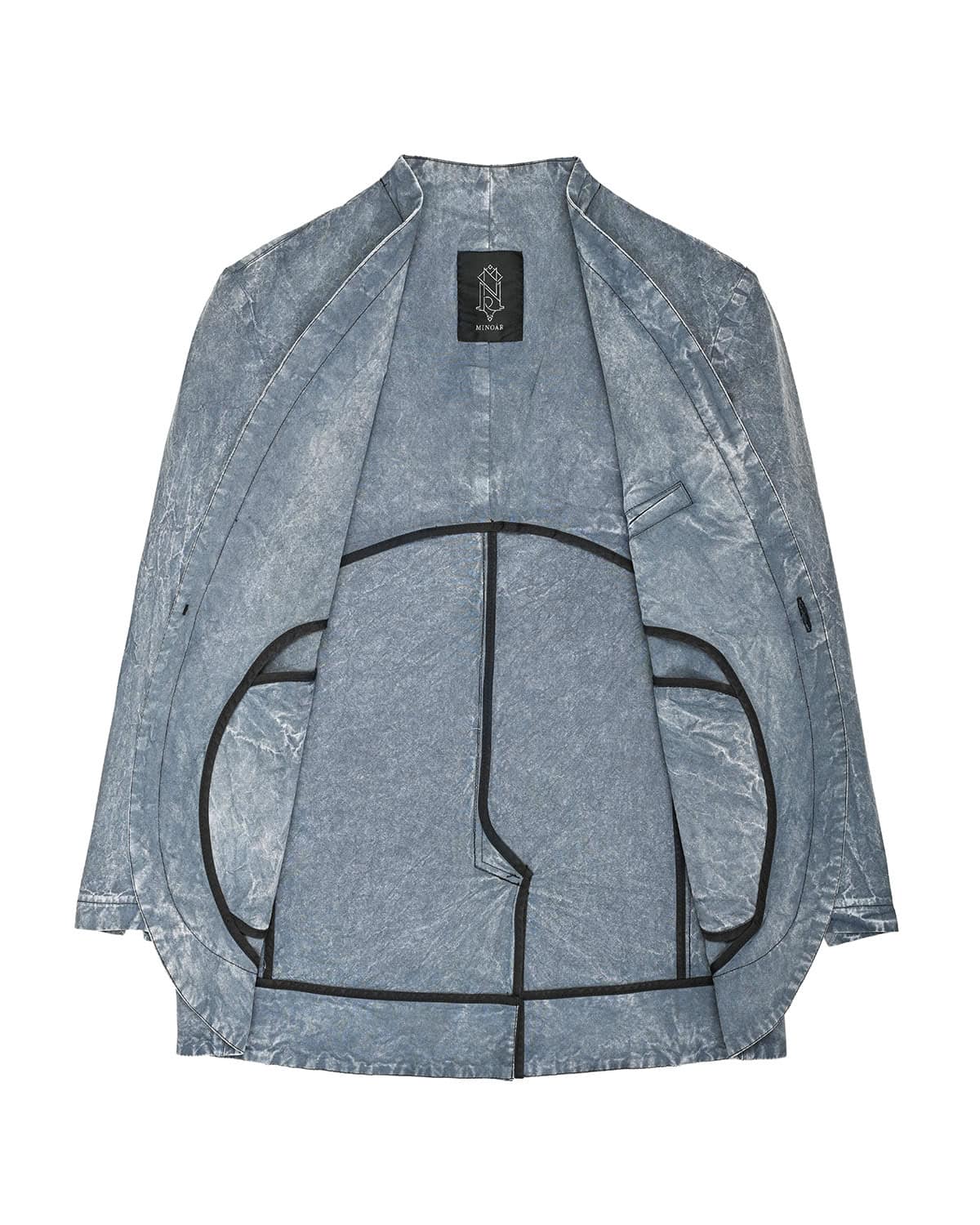 This ‘Insolitum’ Unsullied blazer is crafted in soft, highly textured cotton in unique object-dye ‘Slate’ light blue color shade resembling Iceberg color hues unveiling complex shades & color tones. This signature blazer focuses on comfort through lightweight soft cotton and one distinctive appearance.