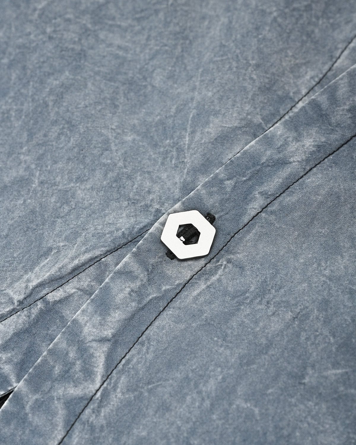 This item features object-dye coloring, washing and texture treatment resulting in one of a kind appearance. Each garment possesses unique look, distressed details and dye variations are part of the intended design characteristics.