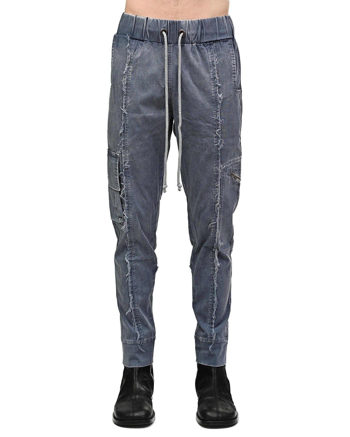 These ‘Insolitum’ Biker Pants are crafted in soft and durable cotton in unique object-dye ‘Slate’ light blue color shade resembling Iceberg color hues unveiling complex shades & color tones.