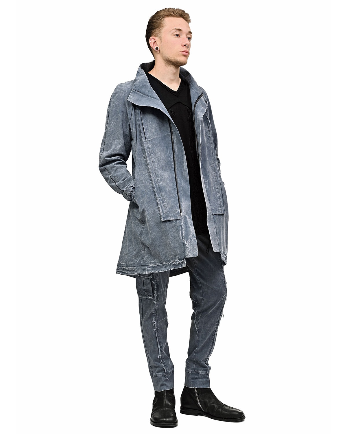 This item features object-dye coloring, washing and texture treatment resulting in one of a kind appearance. Each garment possesses unique look, distressed details and dye variations are part of the intended design characteristics.