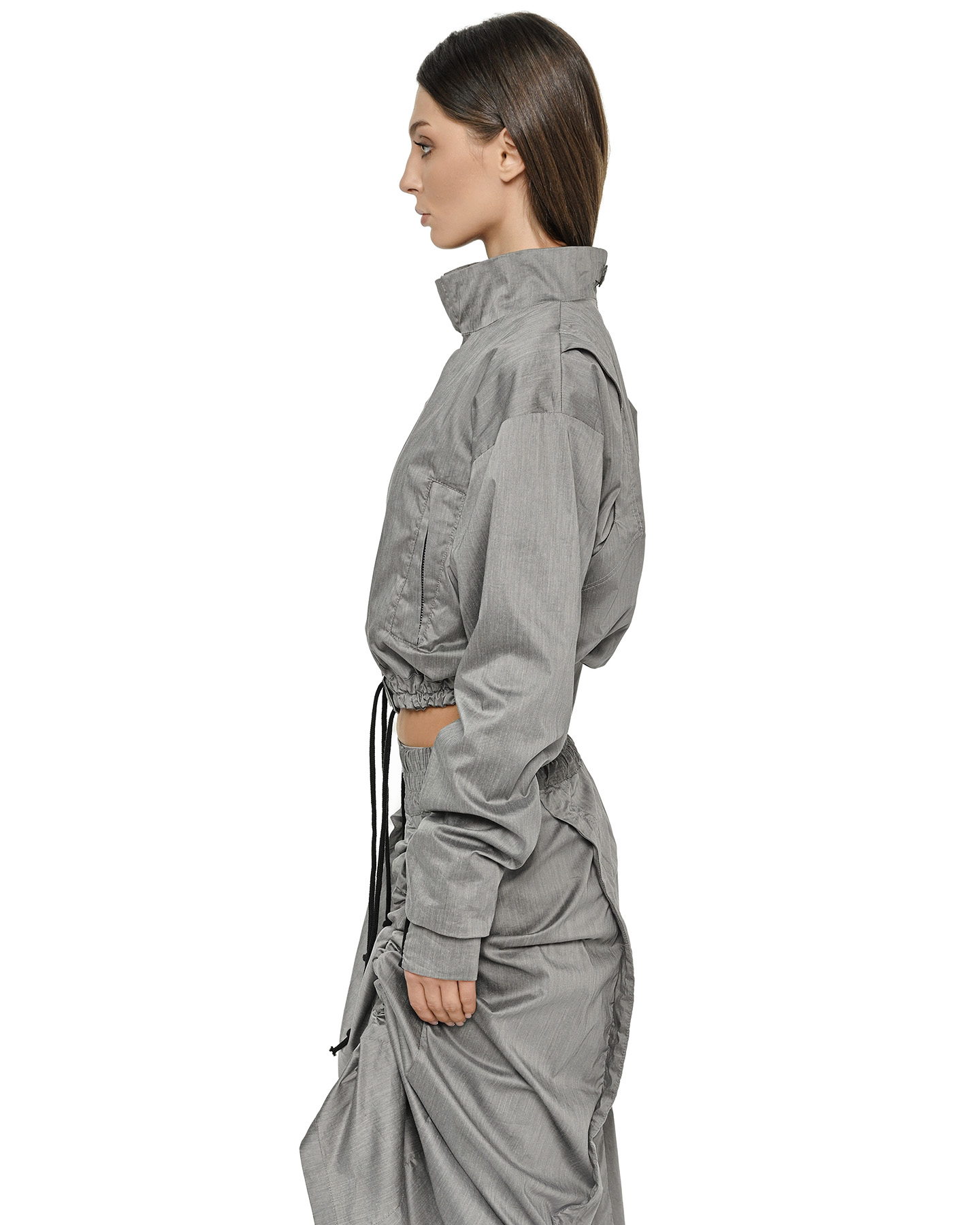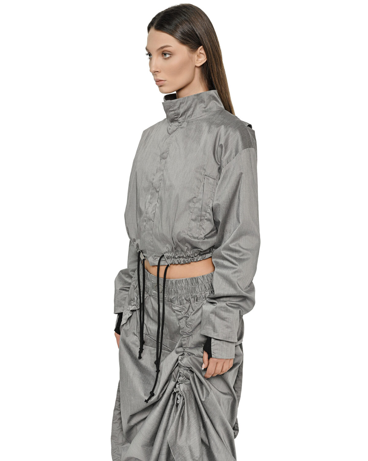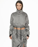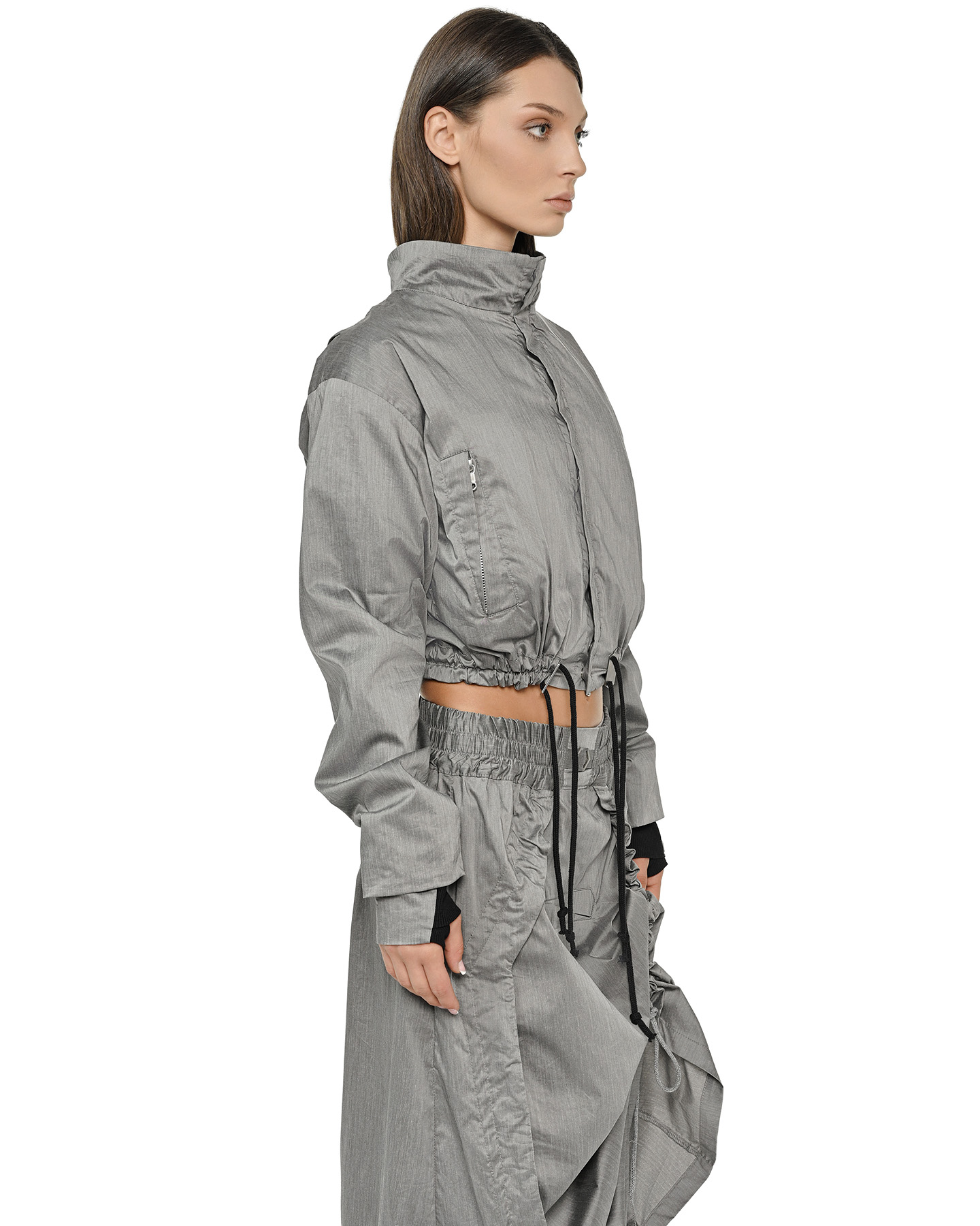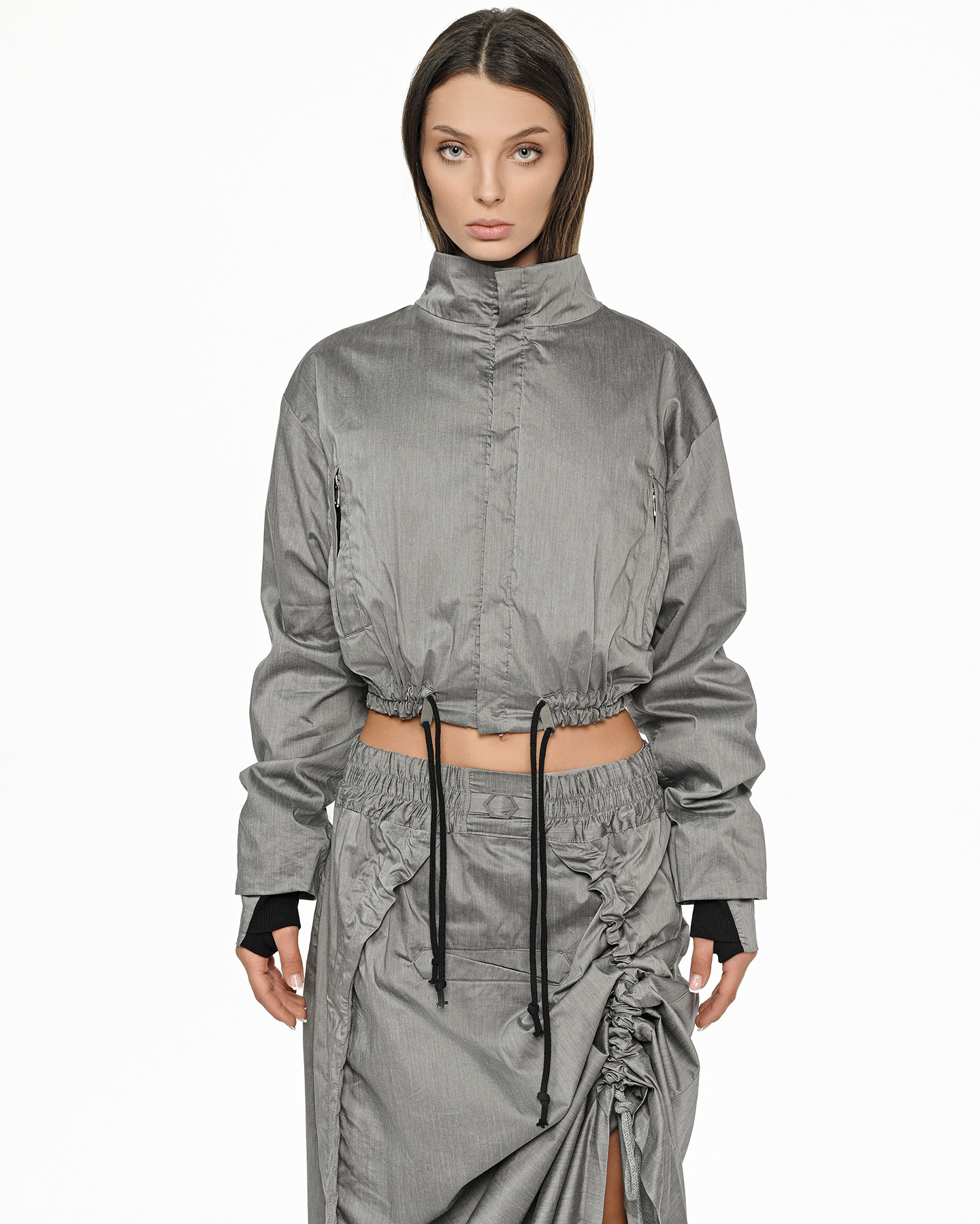 This tech jacket translates the concept of Stellar systems into a highly functional design, where a multitude of distinctive details work in unison. Its relaxed, cropped silhouette is engineered for comfort with a full cotton lining, while the technical paneling and signature hardware give the piece a complex, utilitarian character.