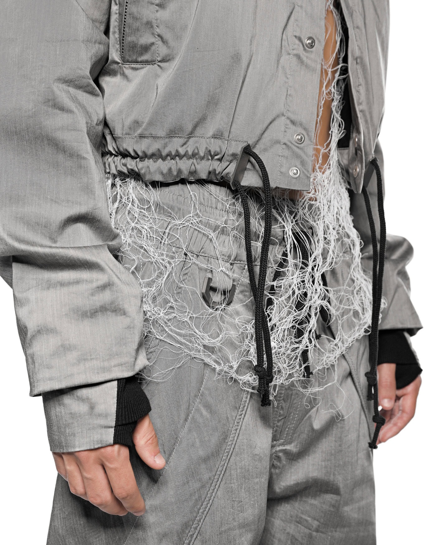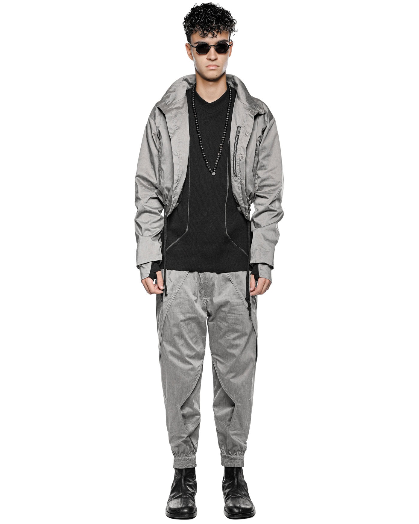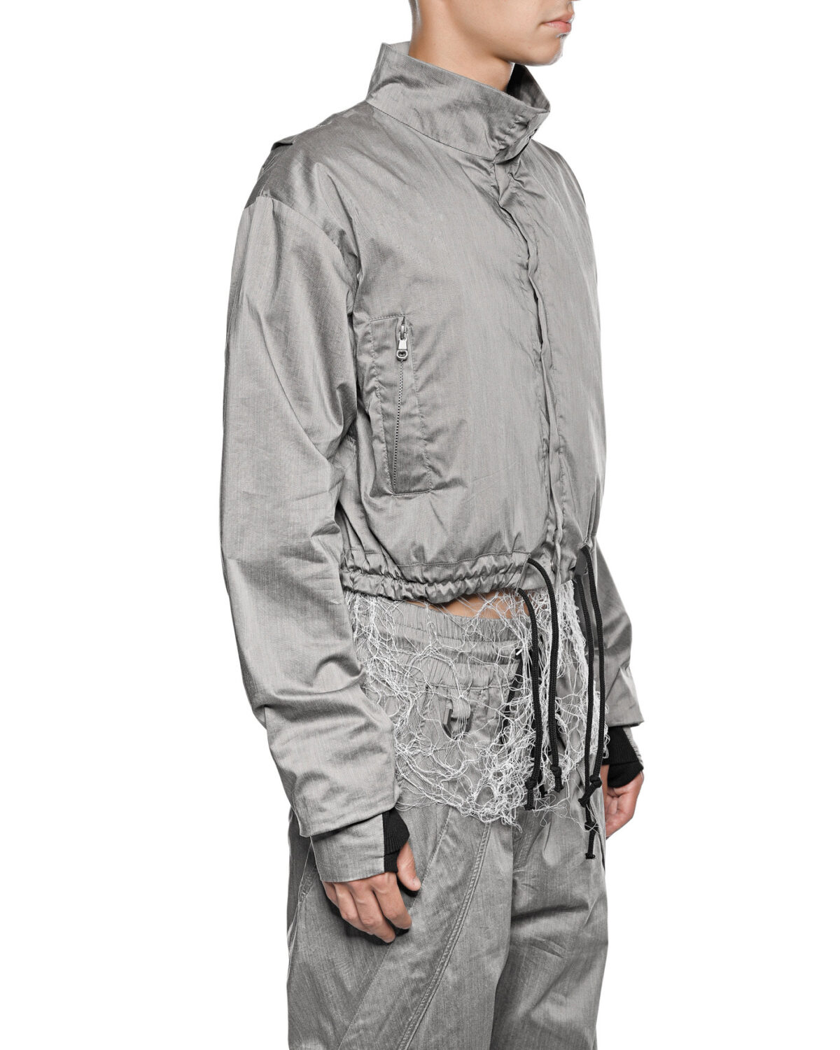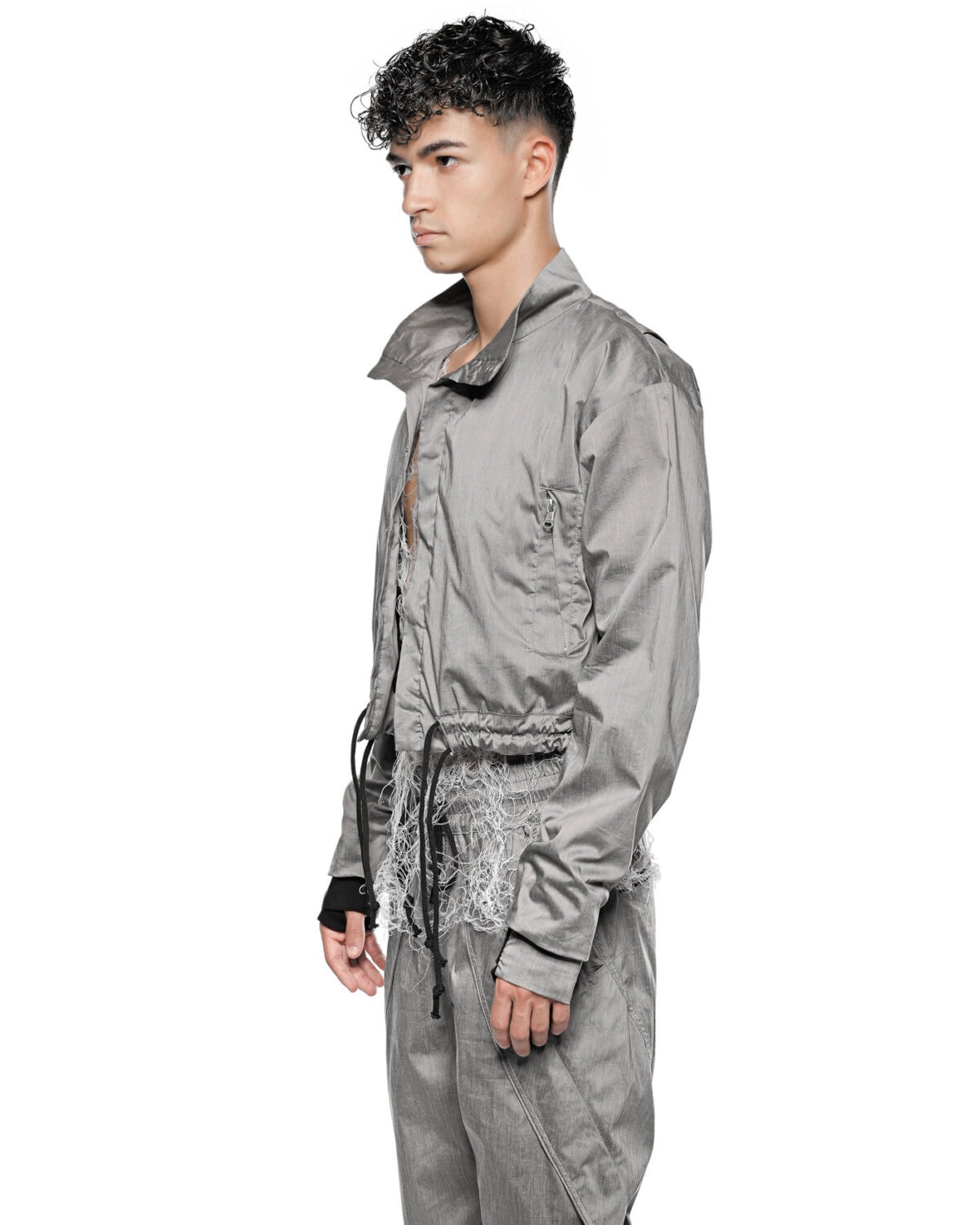 This tech jacket translates the concept of Stellar systems into a highly functional design, where a multitude of distinctive details work in unison. Its relaxed, cropped silhouette is engineered for comfort with a full cotton lining, while the technical paneling and signature hardware give the piece a complex, utilitarian character.