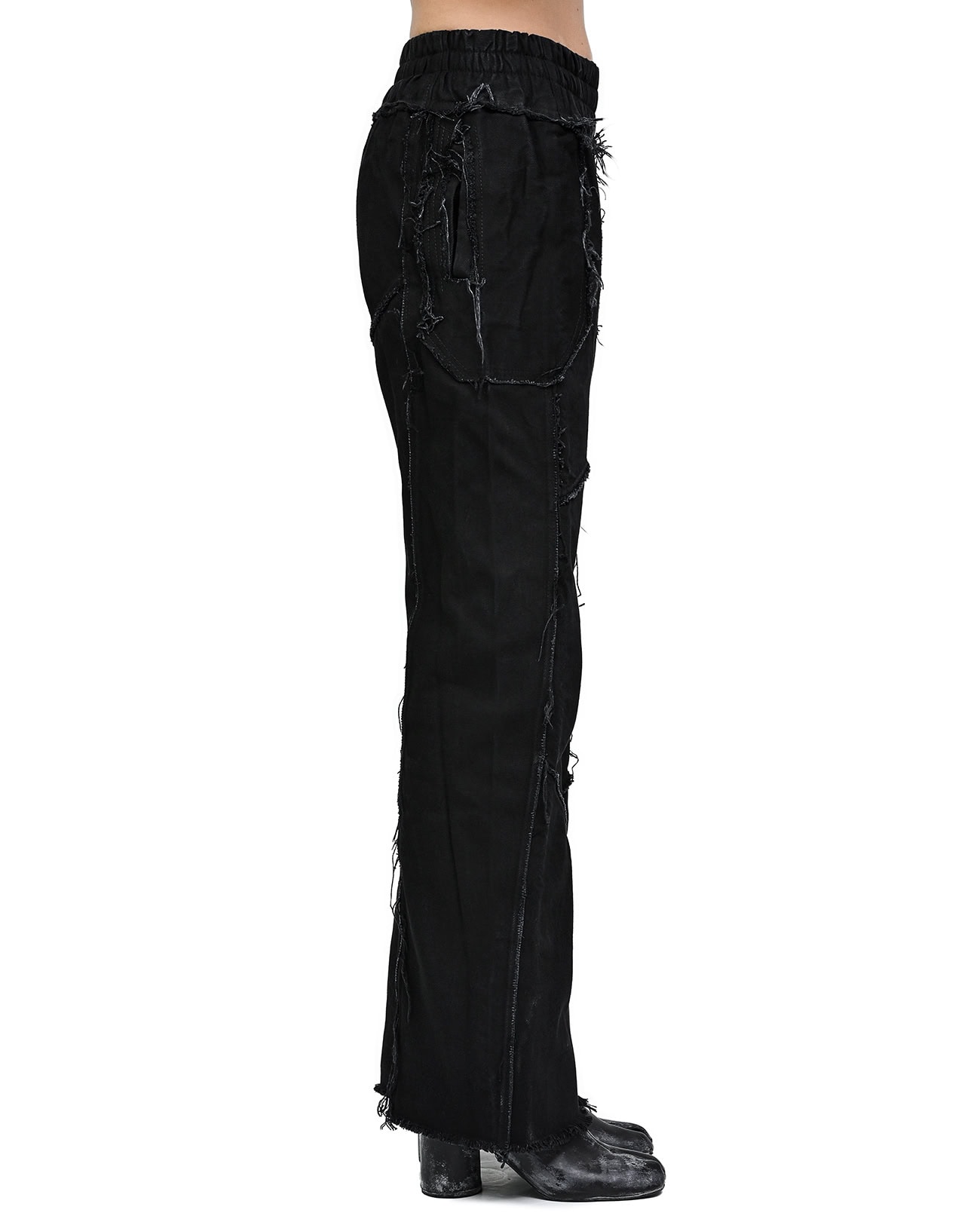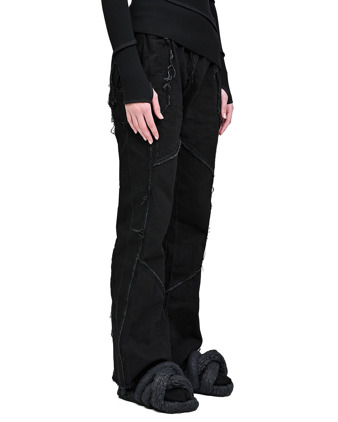 This ‘Insolitum’ garment is crafted in 100% cotton denim in pure black color in raw, washed finish. Raw denim offers unique characteristics which begin to unveil through time and wear where the fabric will naturally begin to age beautifully and offer one of a kind appearance & fades especially noticeable at the edges.