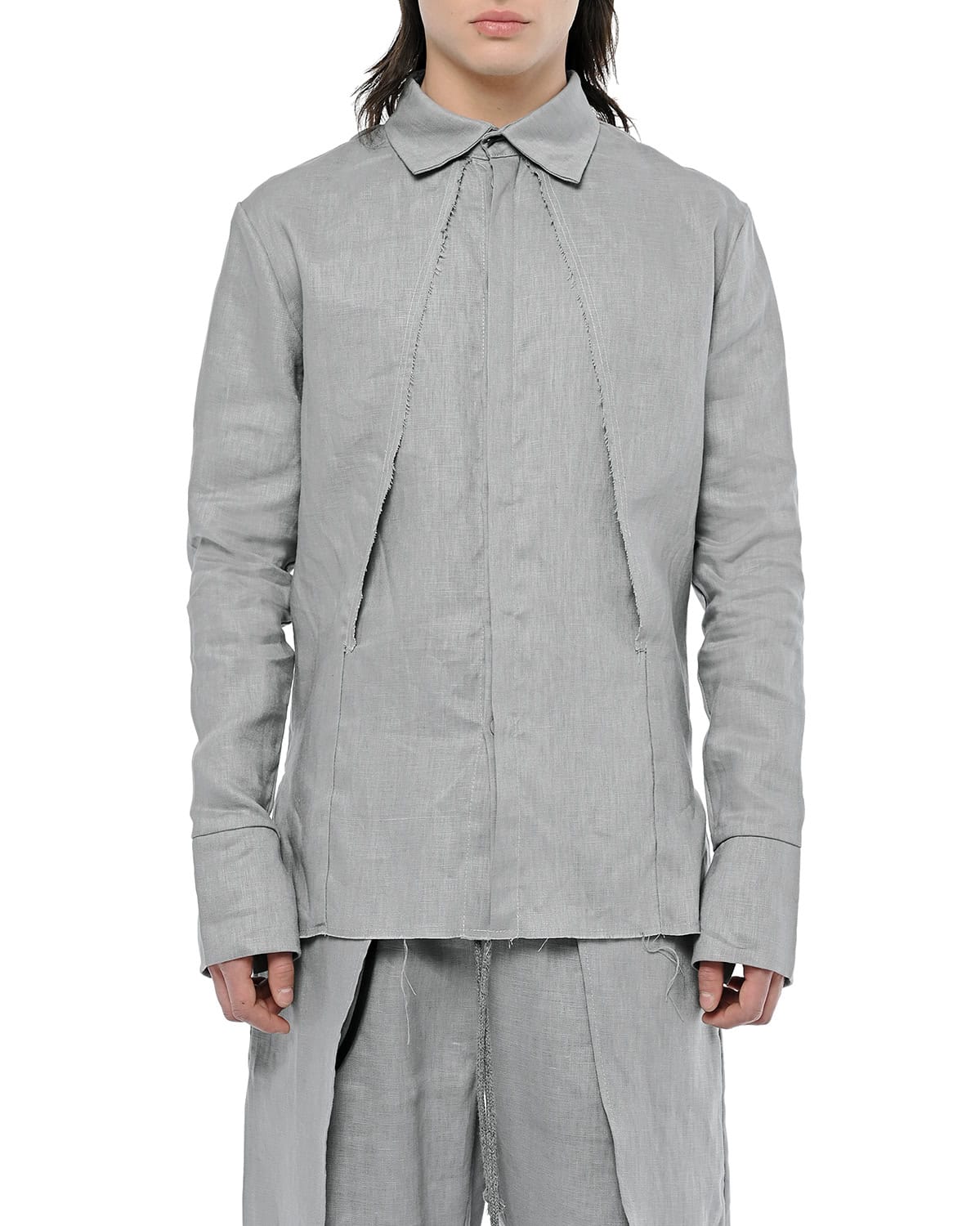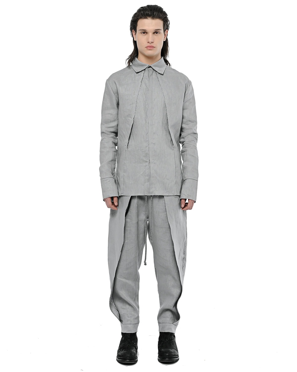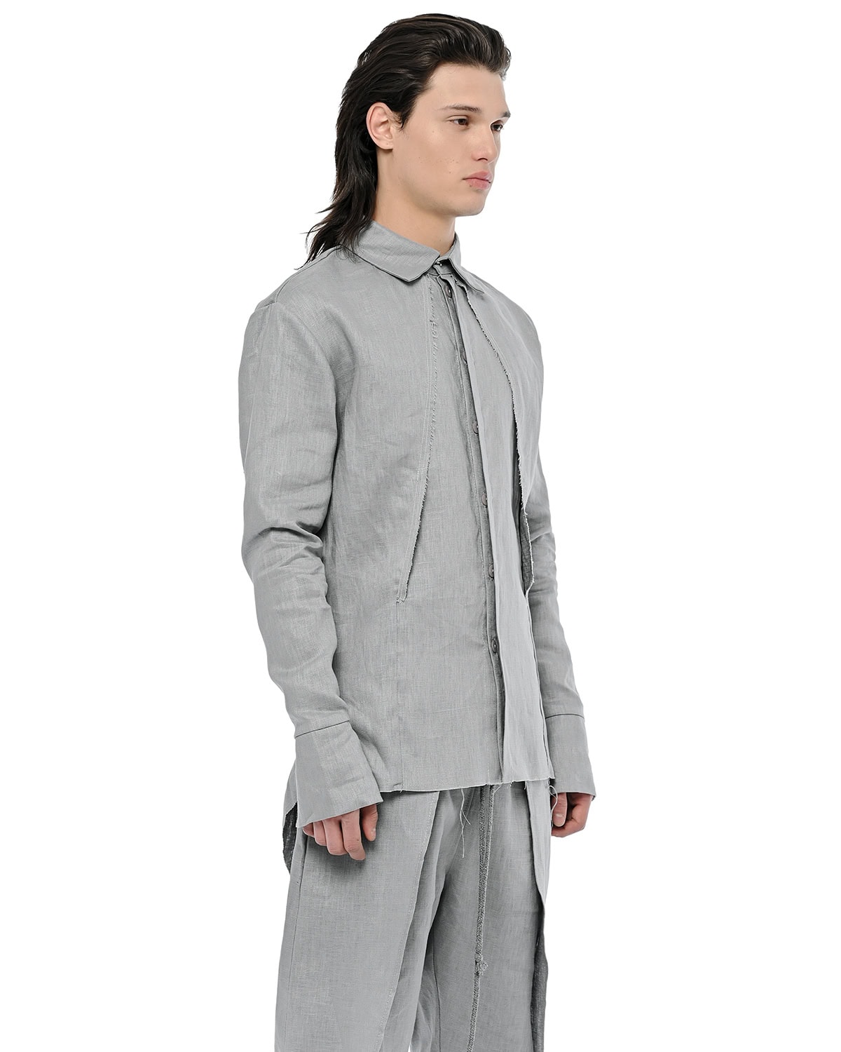 – Einzelner linearer, handgefertigter Knopfverschluss aus Stahl am Kragen