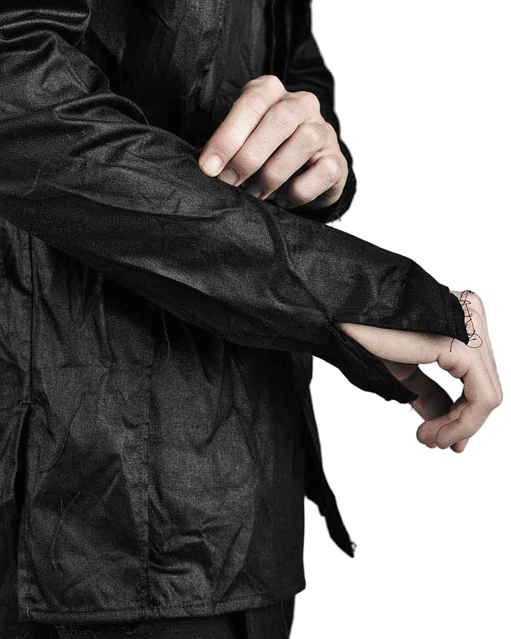 – open cuffs & raw edge finish