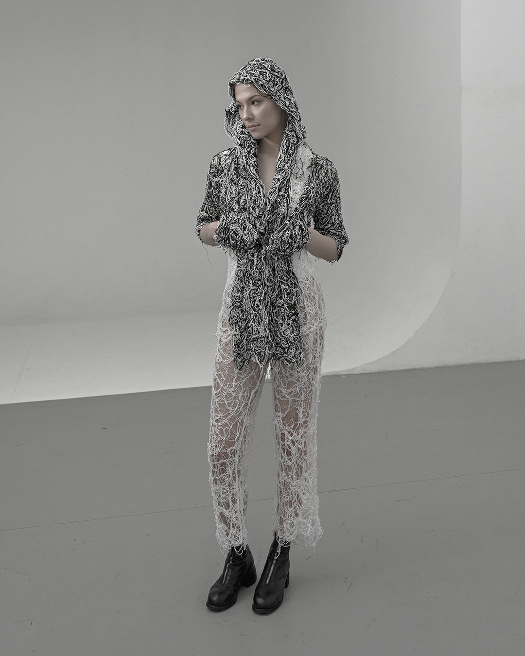 Minoár was born out of desire to create distinct and comprehensive appearance through one of a kind, functional techniques. ‘Fiber Bond’ is a signature technique, neither knitted, nor woven. Fiber Bond was unveiled for the first time in S/S 18 Collection ‘Within’. The artisan approach of intertwined natural fibers results in a strong and durable bond.