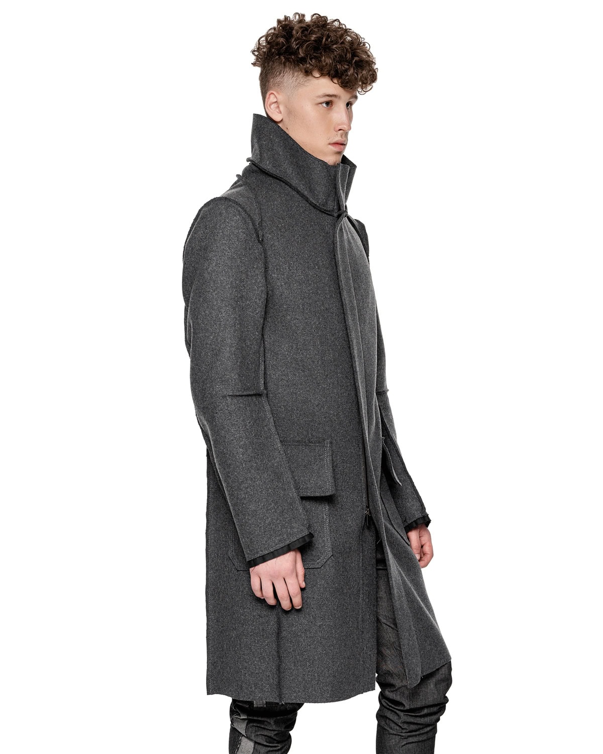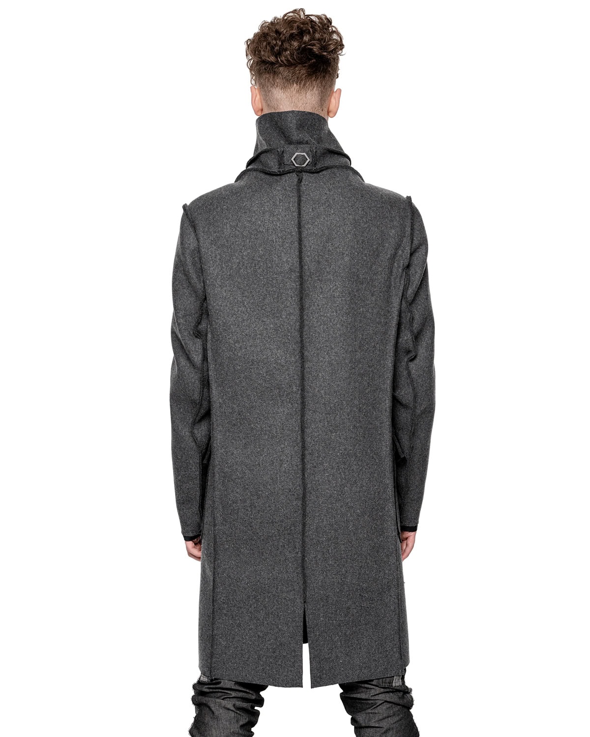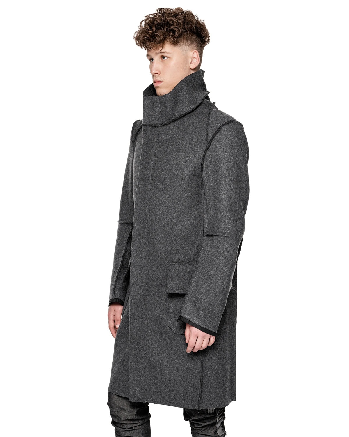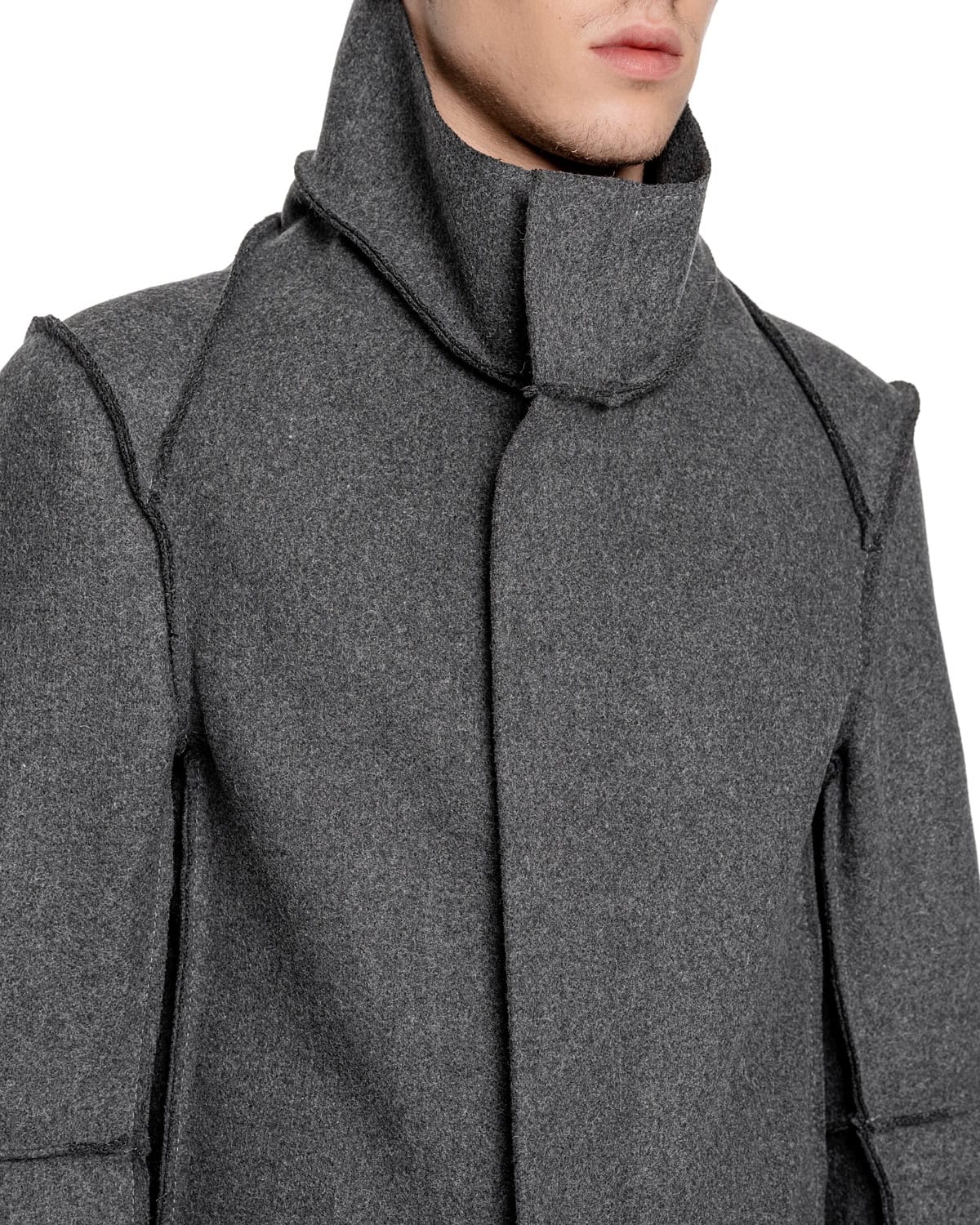 Wool Reversed Raw High Neck Coat