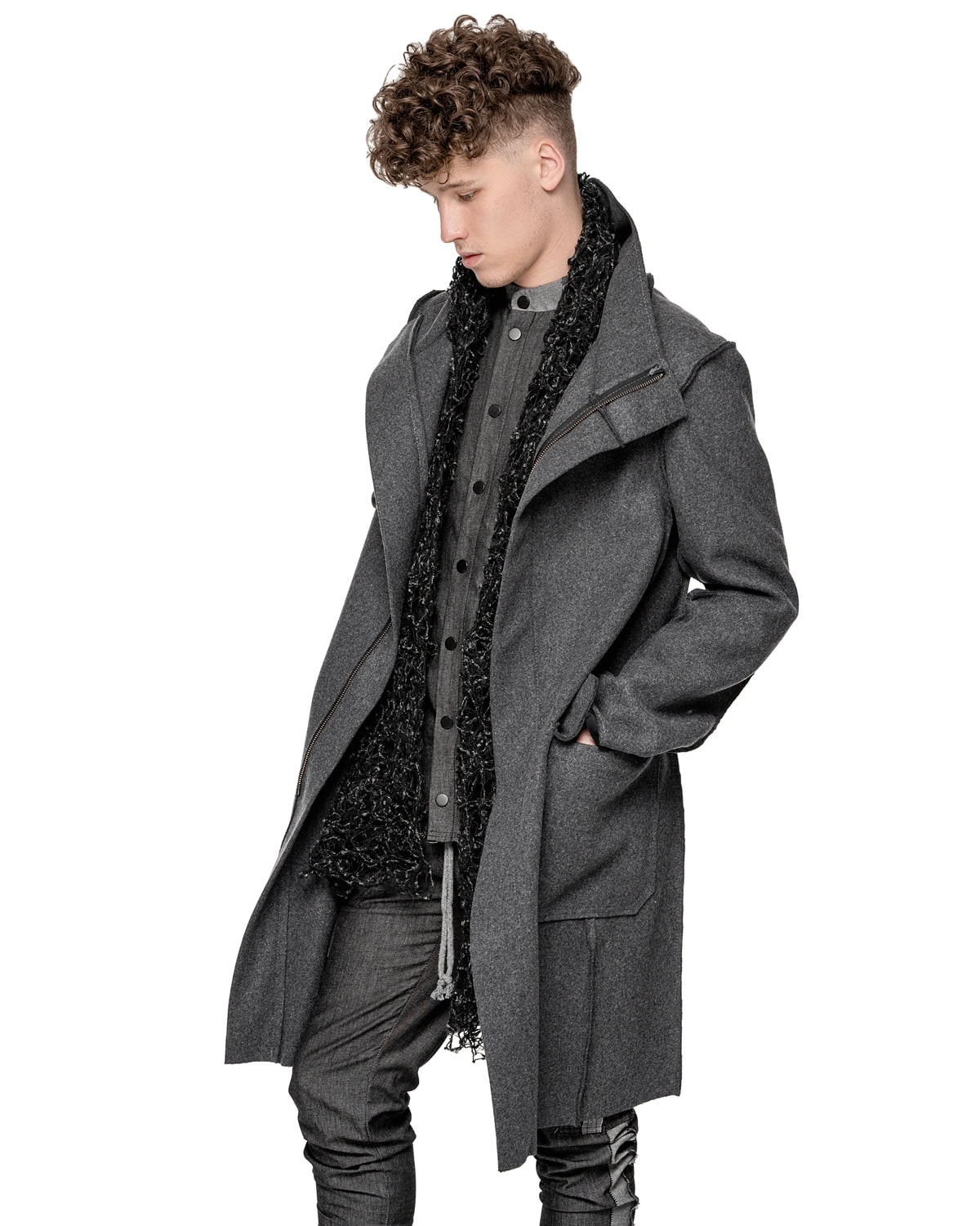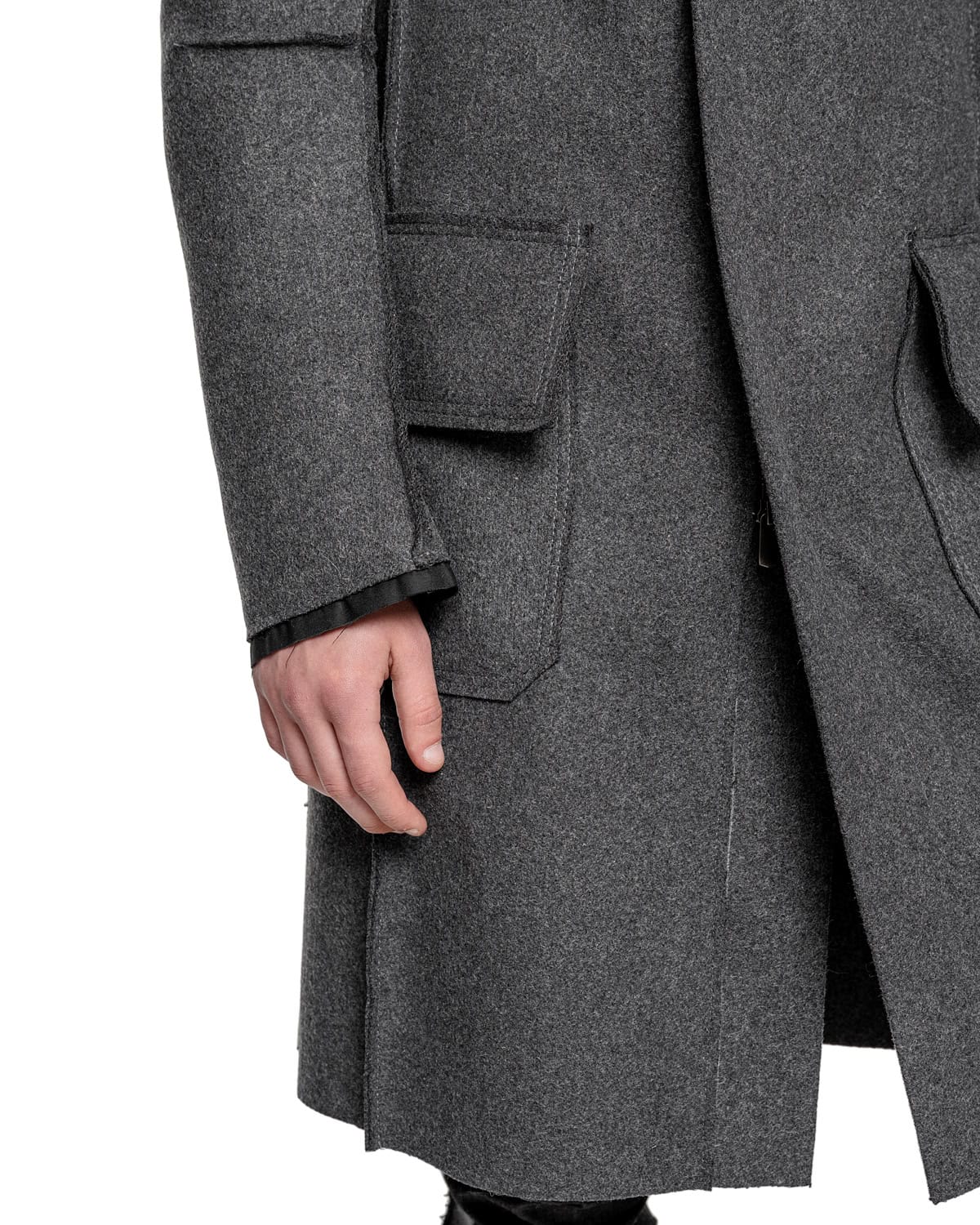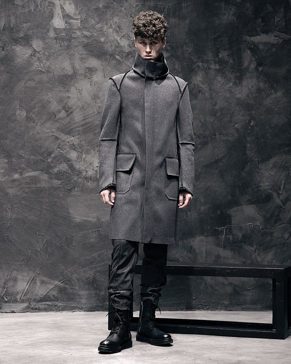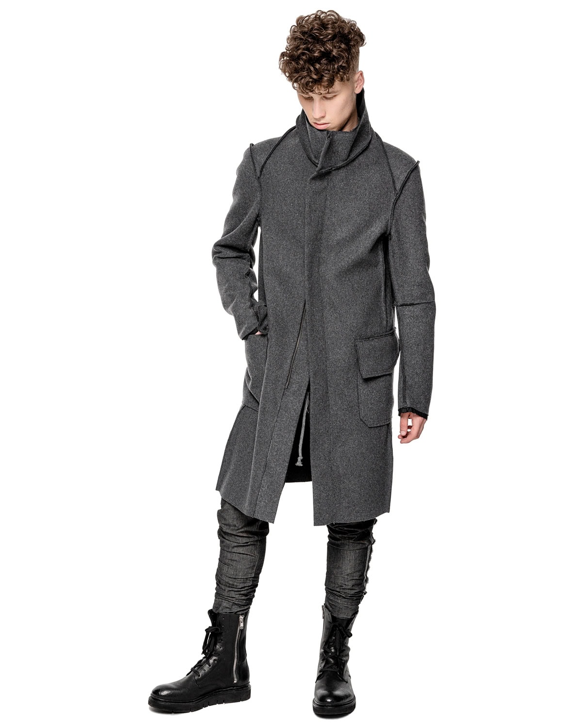 Wool Reversed Raw High Neck Coat